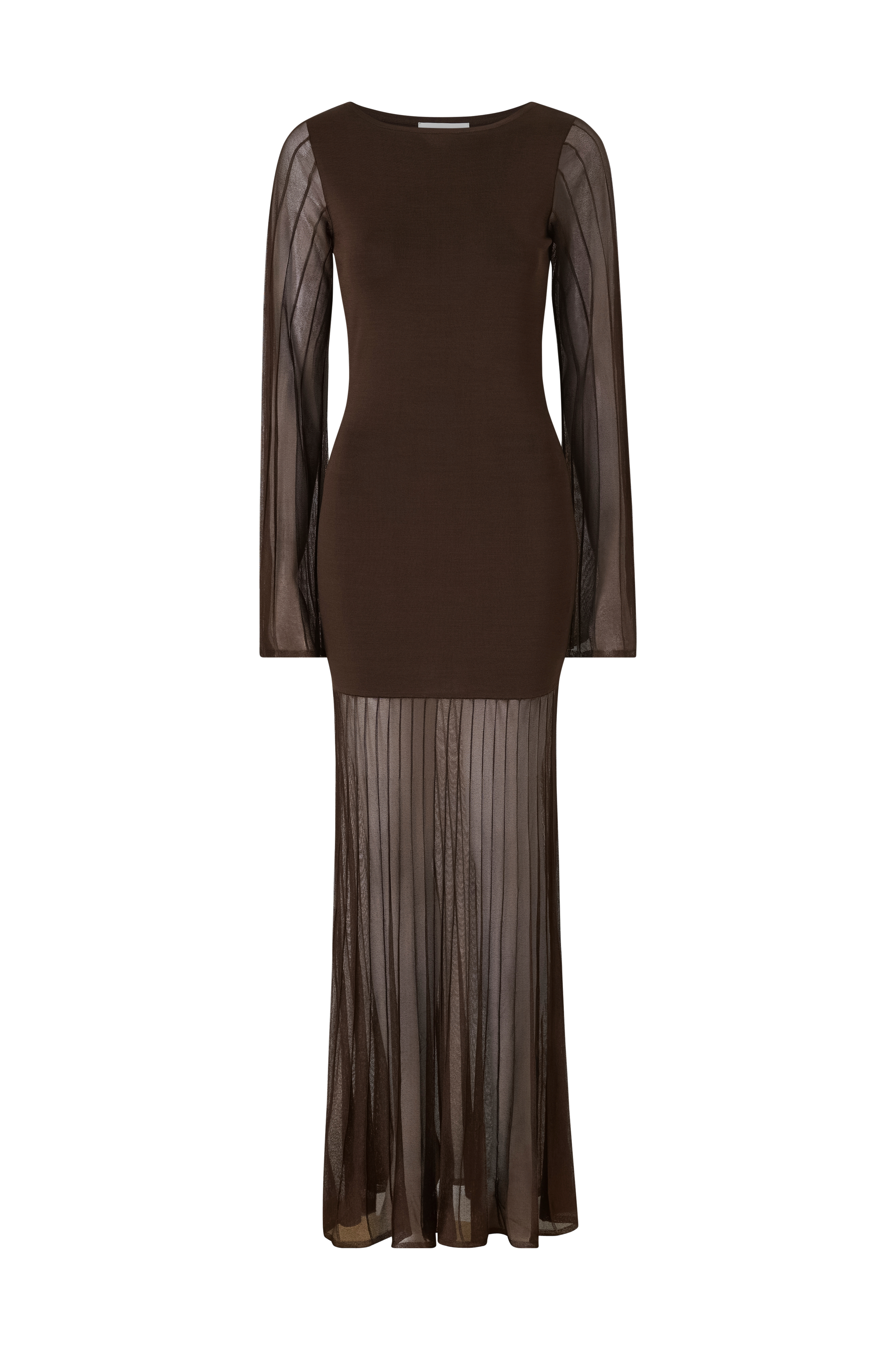 • Figursyet, fintstrikket model med mønsterstrikning på ærmerne og i nederdelen• Rund hals• Langt ærme• Længde: 151 cm i størrelse S