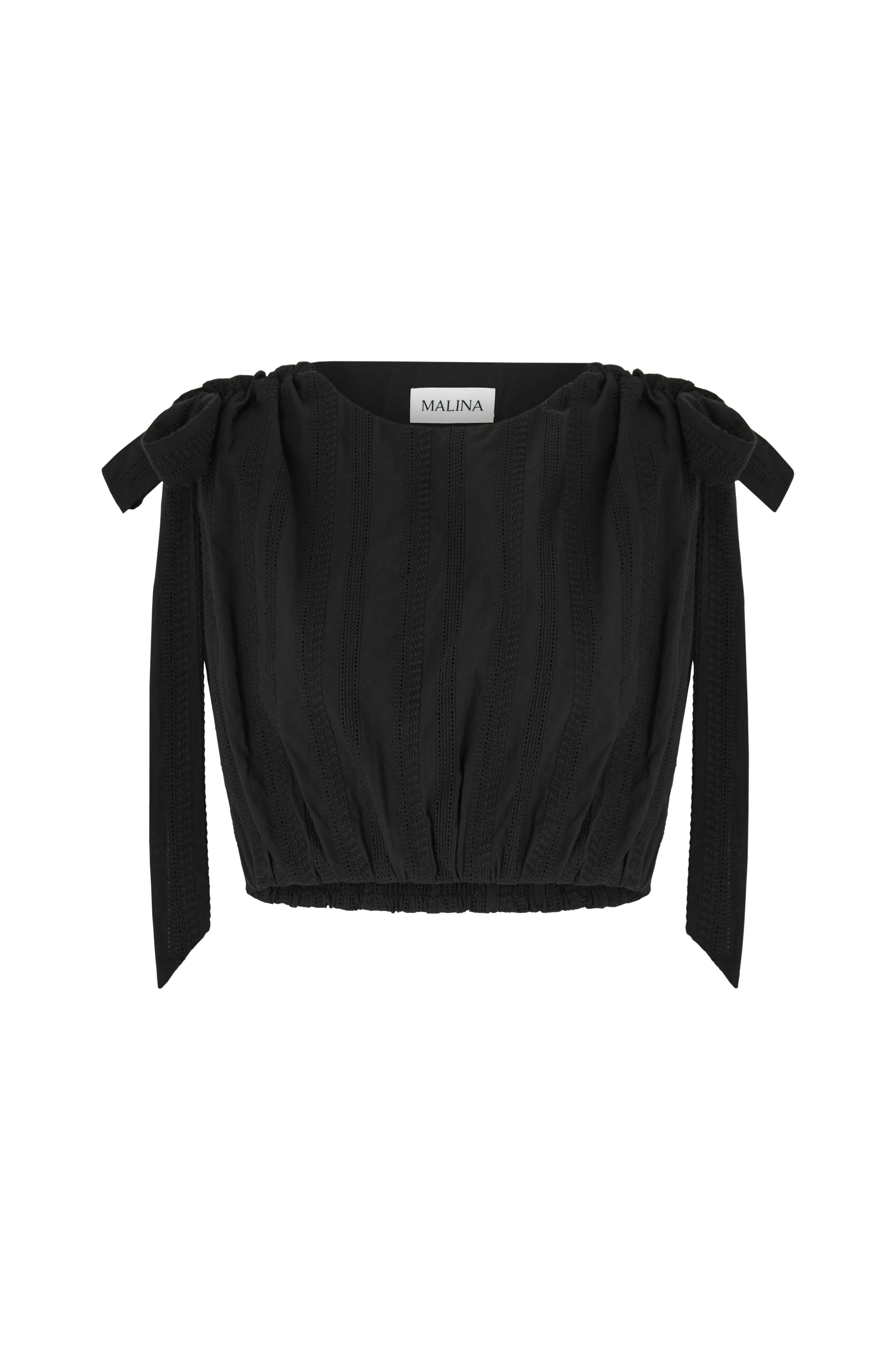 • Croppet, ærmeløs top• Snøring på skuldrene• Skjult elastik nederst• Broderet mønster