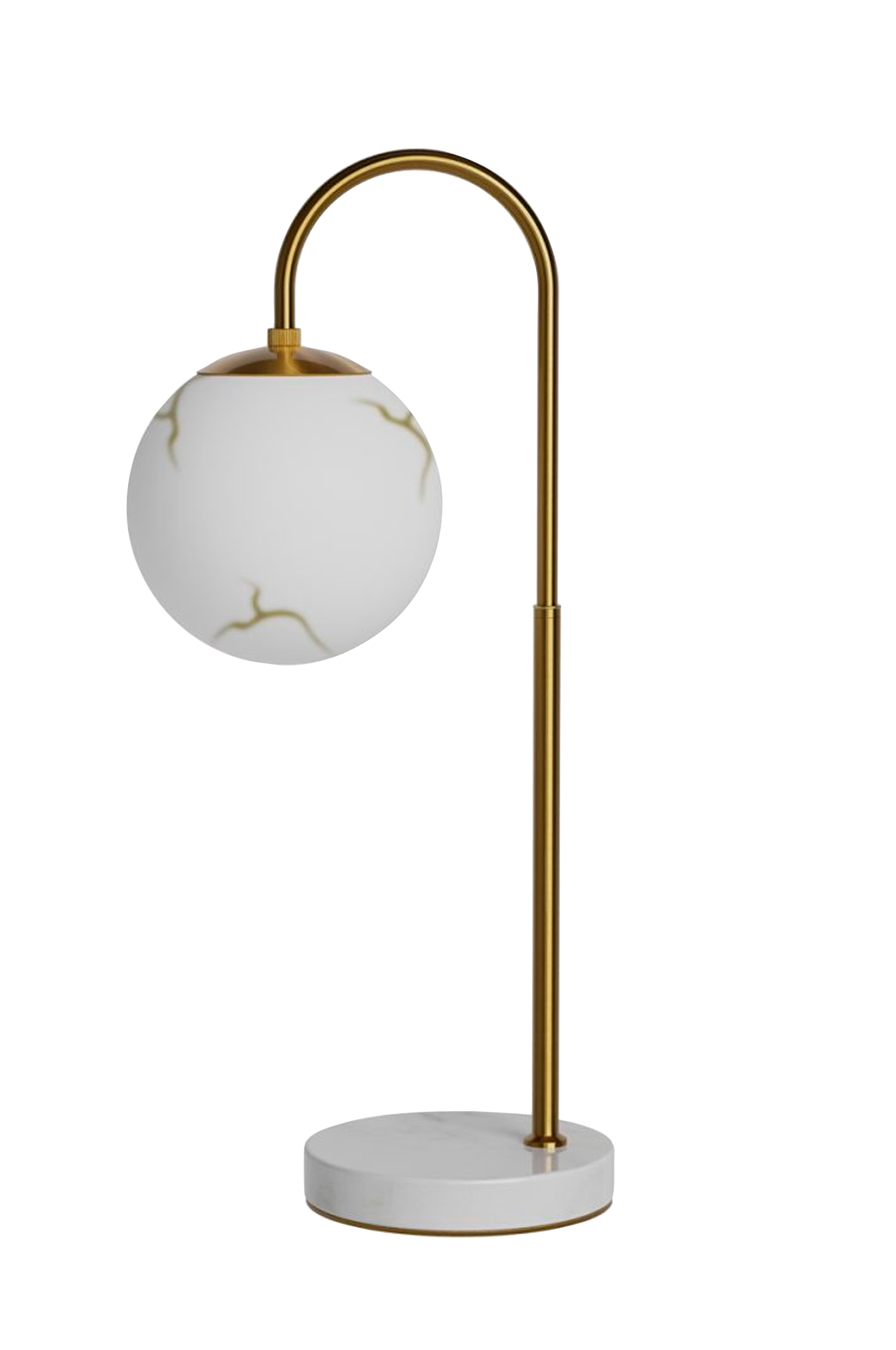 Bellagio bordlampe - tidløs elegance med retrofølelse bellagio er en stilfuld bordlampe, der kombinerer klassiske materialer med moderne design og en tydelig retrofølelse. Lampens fod er lavet af elegant marmor, hvis naturlige ådring gør hvert stykke unikt. De eksklusive detaljer forstærker udtrykket og skaber en harmonisk helhed, som passer lige så godt i et moderne hjem som i mere traditionelle omgivelser. Lampens dekorative skærm i glas giver et blødt og behageligt lysflow, perfekt til hyggelige aftener eller stemningsfuld belysning i stuer, soveværelser eller gange. Det smukke glas bidrager ikke kun til lampens eksklusive udseende, men fungerer også som et effektfuldt element i indretningen. Bellagio er nem at placere og fungerer lige så godt på et sidebord som i en vindueskarm eller på et natbord. Skulle uheldet være ude, kan glasskærmen købes som reservedel, hvilket gør lampen både holdbar og langtidsholdbar.