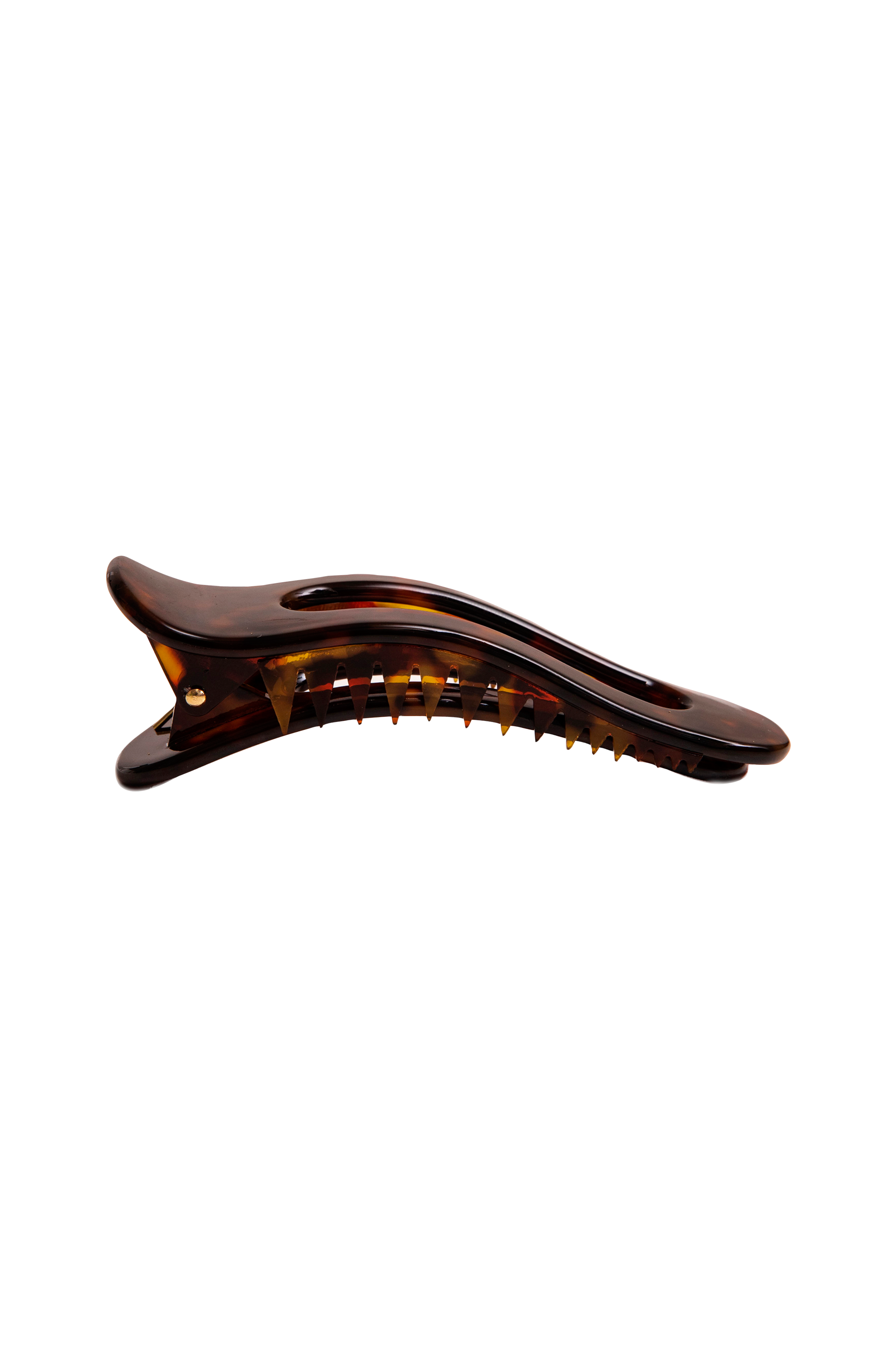 Flad hårklemme med tandoverdel og kraftig klemme. Størrelsen gør, at den passer bedst i et lidt tyndere hår eller som en del af en opsætning i et tykkere hår. Et skånsomt og praktisk håraccessory som kan bruges på mange forskellige måder og som ikke slider på dit hår.