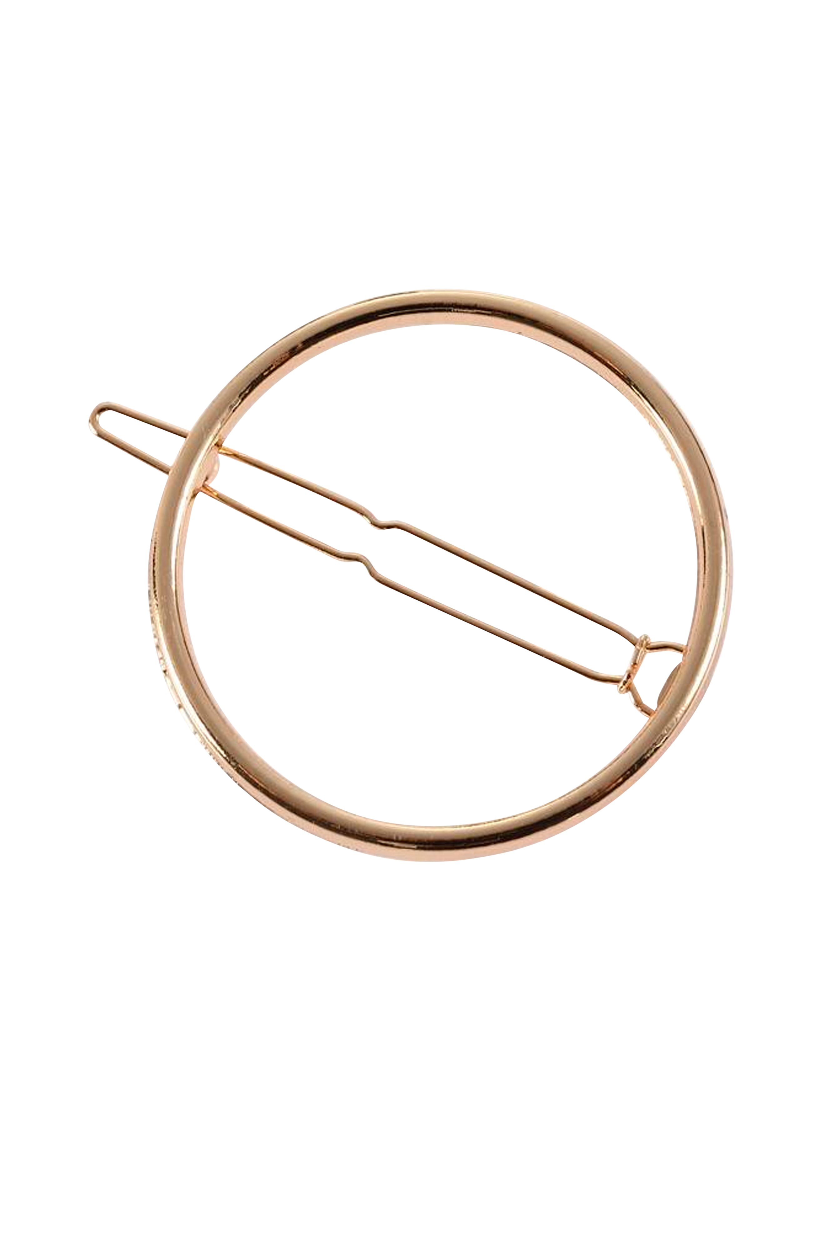 Rundt, guldfarvet hårspænde i metal. Diameter: 4,7 cm. Materiale: metal.