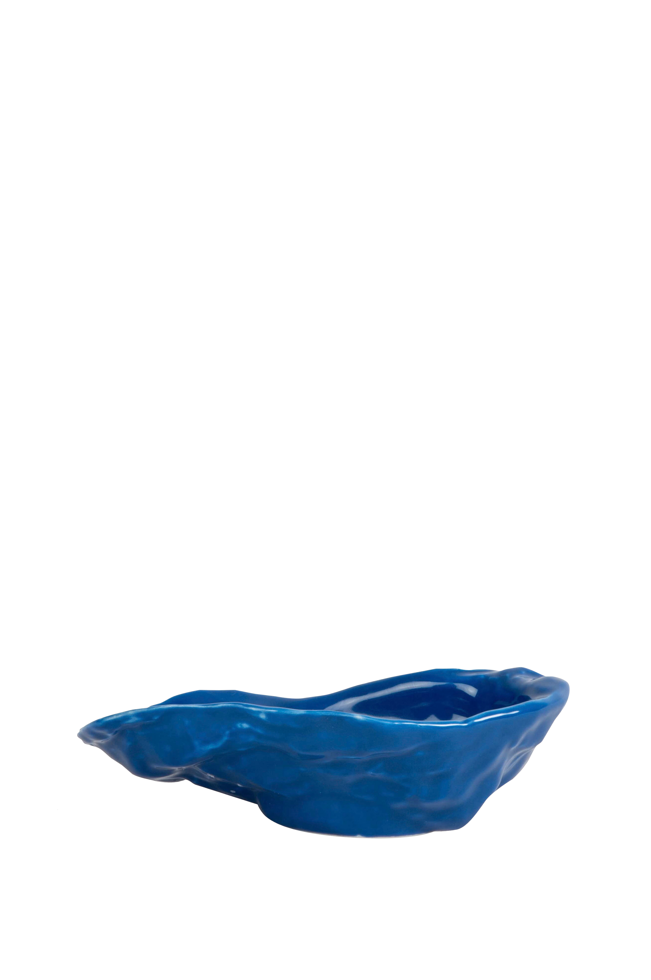 Under havoverfladen finder du en verden af ukendte former og smukke materialer. Vi spiser af skaller, byder barske overflader velkommen og skifter glitter ud med saltsprøjt. Havet flytter indendørs, når vi dekorerer og dækker bord, simpelthen fordi vi ikke kan modstå legesygen. Bowl Oyster er et resultat af, når havets dybde gør indtryk på vores kreationer. Med sin legesyge blå, beige eller grå farve med en blank finish bliver denne skål noget helt særligt. Den fås også i hvid med en mat finish. Bland farver, brug den til smykker, tapas eller flagesalt. Skålen tåler opvaskemaskine, så den er nem at rengøre. Må ikke bruges i mikrobølgeovn eller ovn. 13x8x3,5cm