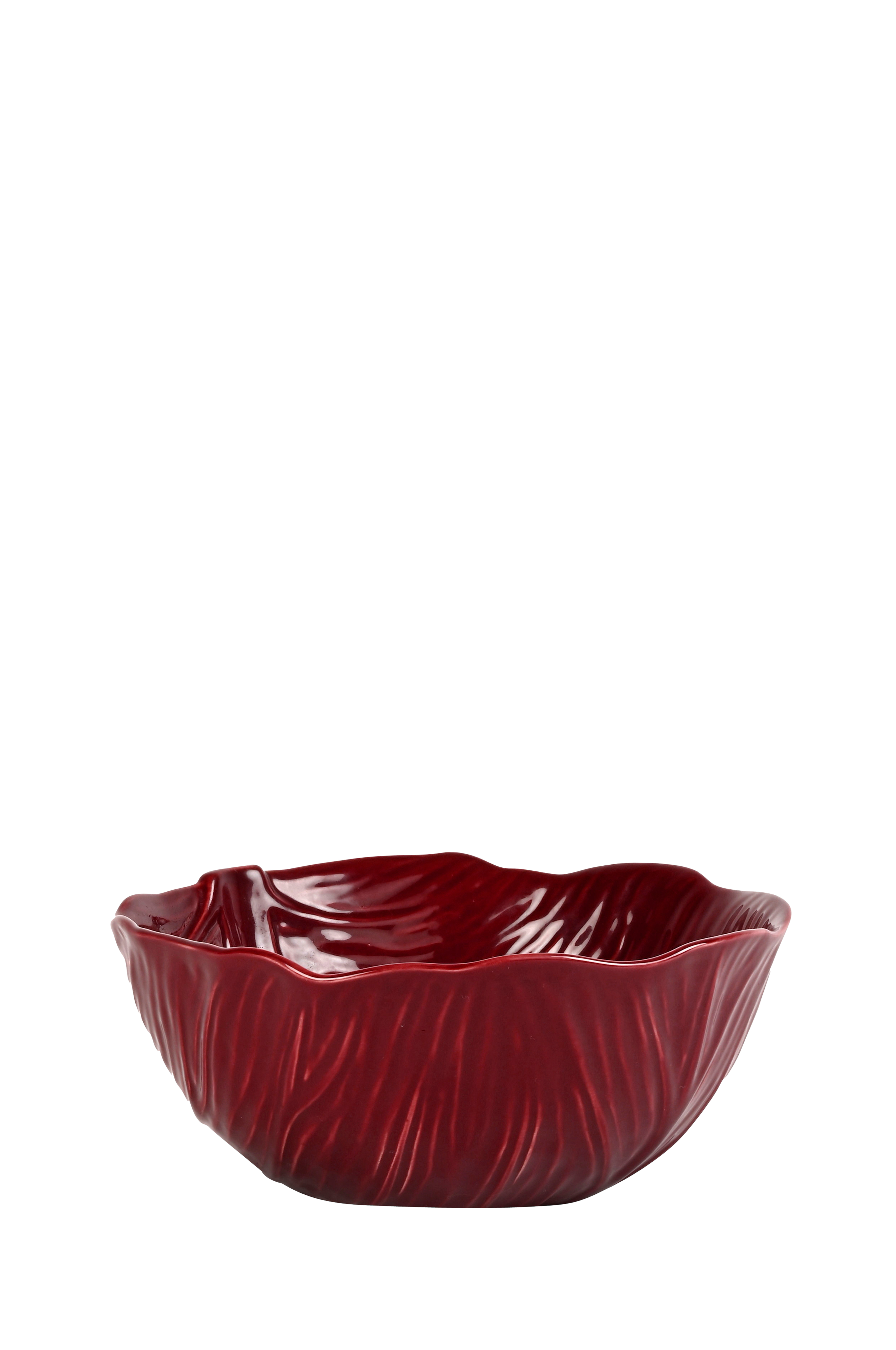 Vi høster grøntsager som aldrig før og lader os inspirere af deres naturligt legende former. Veggie-familien består af skåle formet som kålblade og fås i både grønne og røde nuancer. Det er med garanti glade og brugbare detaljer, som er nemme at holde af. Rødkålens røde farve harmonerer med alt og løfter hverdagsservicen, uanset om man vælger at bruge en eller flere skåle. Veggie M-skålen har den perfekte størrelse til salat eller tilbehør. Den er lavet af stentøj. Skålen tåler opvaskemaskine, så den er nem at rengøre og vedligeholde. Tåler ovn og mikroovn. Design Byon Studio. Leveres i Byon-æske.