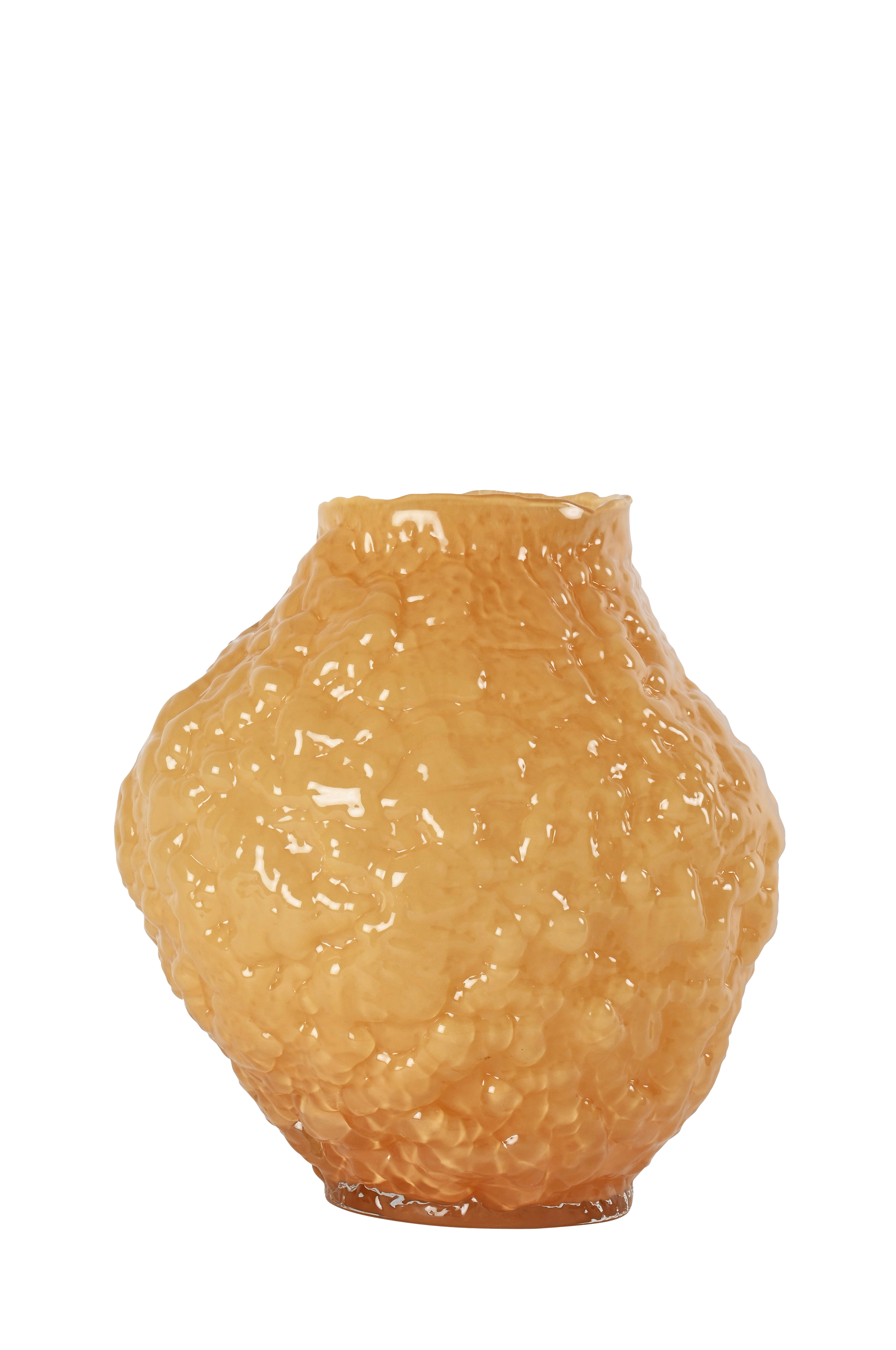 Glassets struktur er som en koral under havbunden. Organisk og beslægtet med vores ven Watery. Formen er uregelmæssig og ekstravagant og tager selvsikkert al opmærksomheden i et rum eller på et bord. Farven er smørgul i en spændende mælkeagtig finish. Materialet er håndlavet glas, og hver vase er unik. Der findes flere smukke farver og modeller i Corallo-familien. Farve- og strukturforskelle kan forekomme. Design Byon Studio. Leveres i Byon-æske.