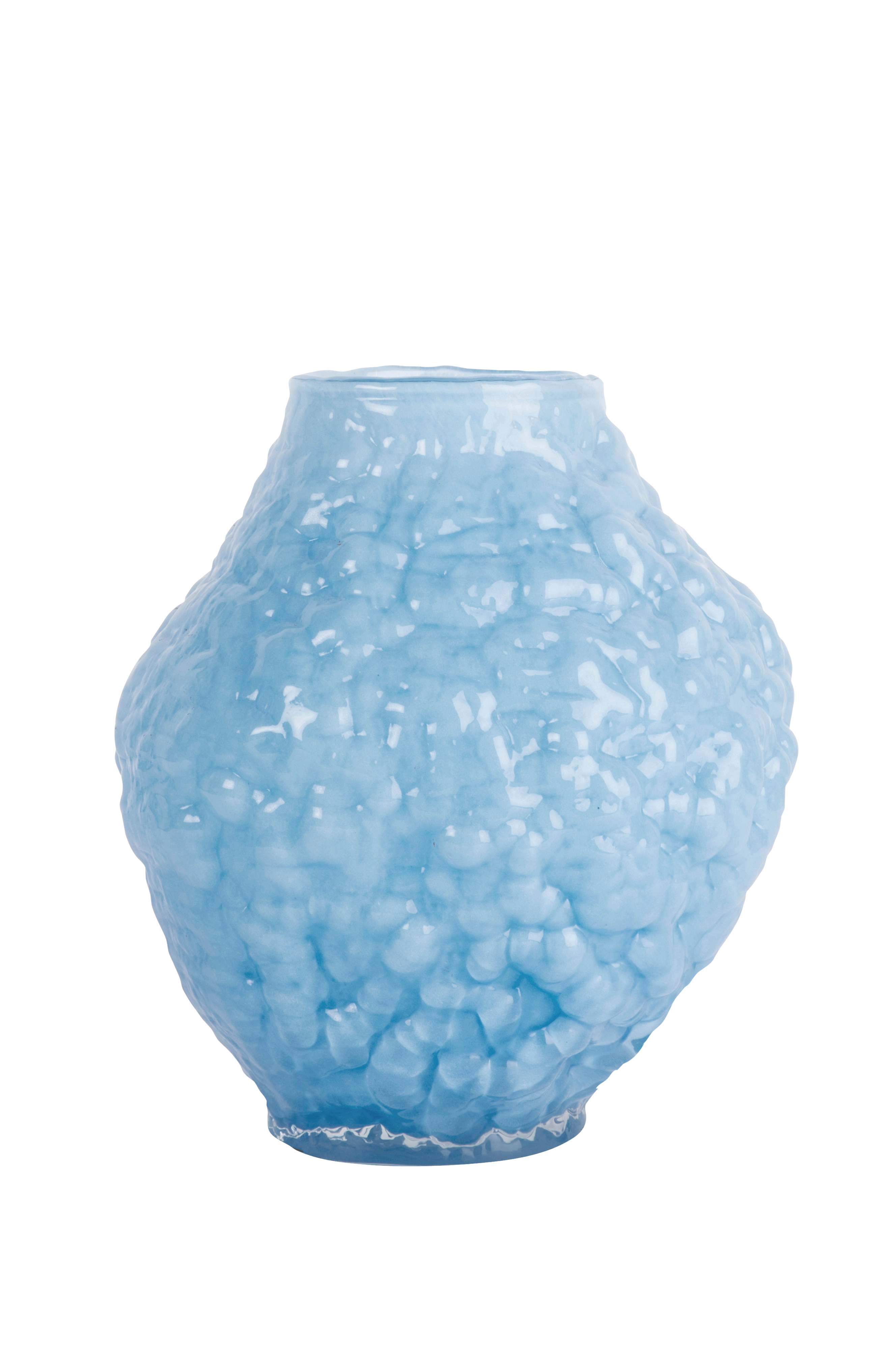 Teksturen i Corallo smalls glas minder om en koral på havbunden - organisk og beslægtet med vores ven Watery. Formen er uregelmæssig og ekstravagant med en perfekt størrelse, der passer overalt eller kombineres smukt med andre. Den fås i bløde, mælkeagtige toner af havblå eller pistaciegrøn eller i klassisk klart glas til at fremvise stængler og grene. Materialet er mundblæst glas, hvilket gør hver vase unik. Variationer i farve og tekstur kan forekomme. Designet af Byon Studio. Leveres i en Byon-æske.