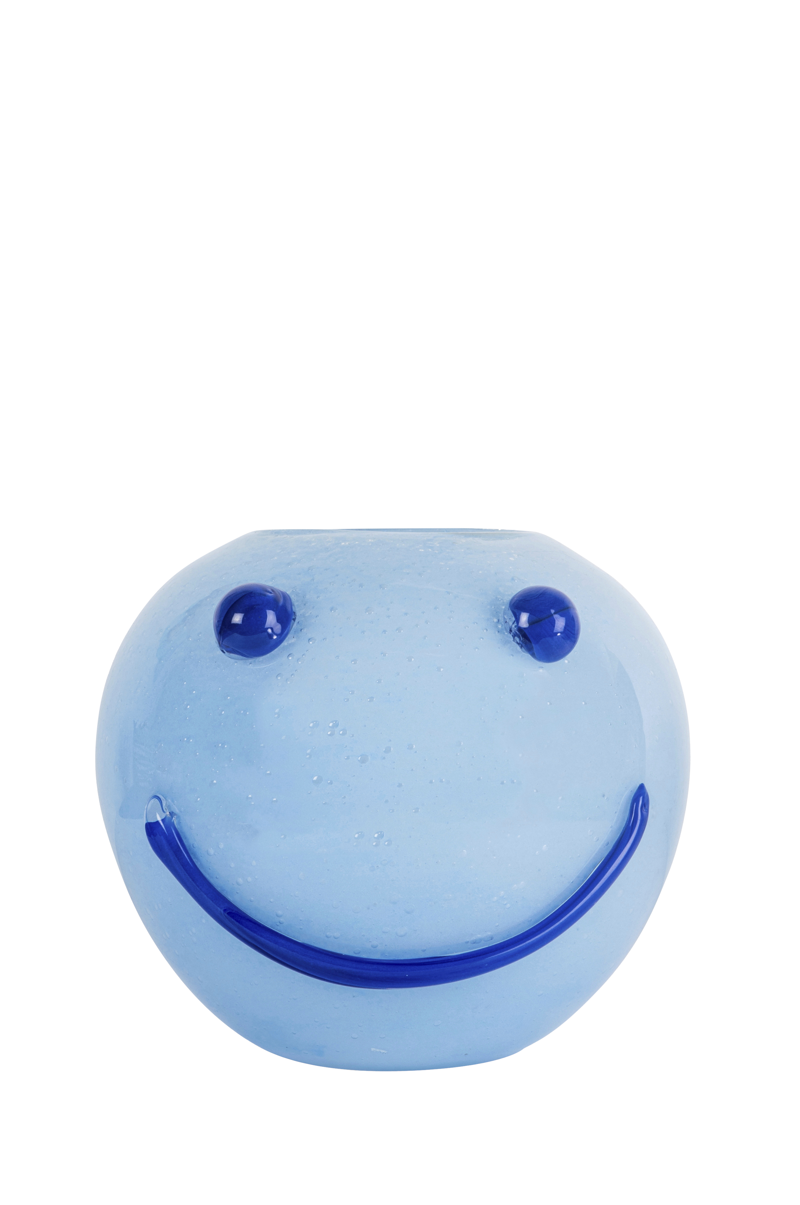 Happy er statement-vasen, der fylder dit hjem med glæde! Mr Happy, i sit dristige blå outfit, er både dekorativ og legesyg, hvilket gør den til et blikfang. Lavet af håndlavet glas og leveret i en blåstribet æske. Materialet er håndlavet glas, og hver vase er unik. Variationer i farve og tekstur kan forekomme. Designet af Byon Studio. Leveres i en Byon-æske.