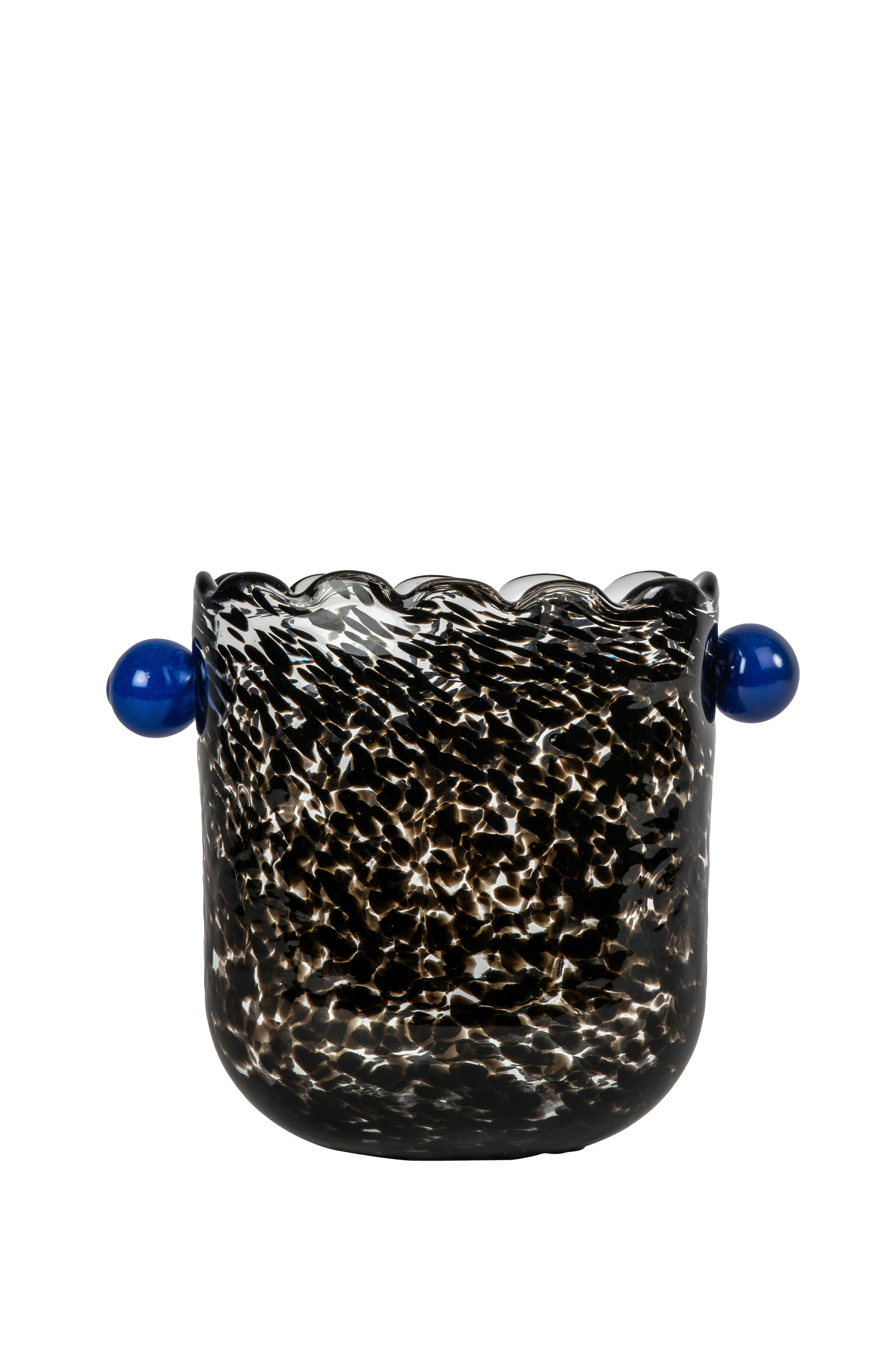 Serien Messy er både legesyg og sjov at bruge til servering. Den indbyder til at lave kreative drikke og være lidt drilsk. Vasen, vinkøleren eller puncheskålen Messy er lige så flot som sine familiemedlemmer og leverer flere anvendelsesområder, kun fantasien sætter grænser. Formen er oval, så den passer ind overalt, og den er dekoreret med to runde håndtag i power-blue. Det tykke glas er håndlavet og mundblæst i klare sorte toner. Alle glas er unikke på deres egen måde - ligesom dig. Farve- og teksturforskelle kan forekomme. Tåler opvaskemaskine. Designet af Byon Studio. 26,5x14,5x21,5cm