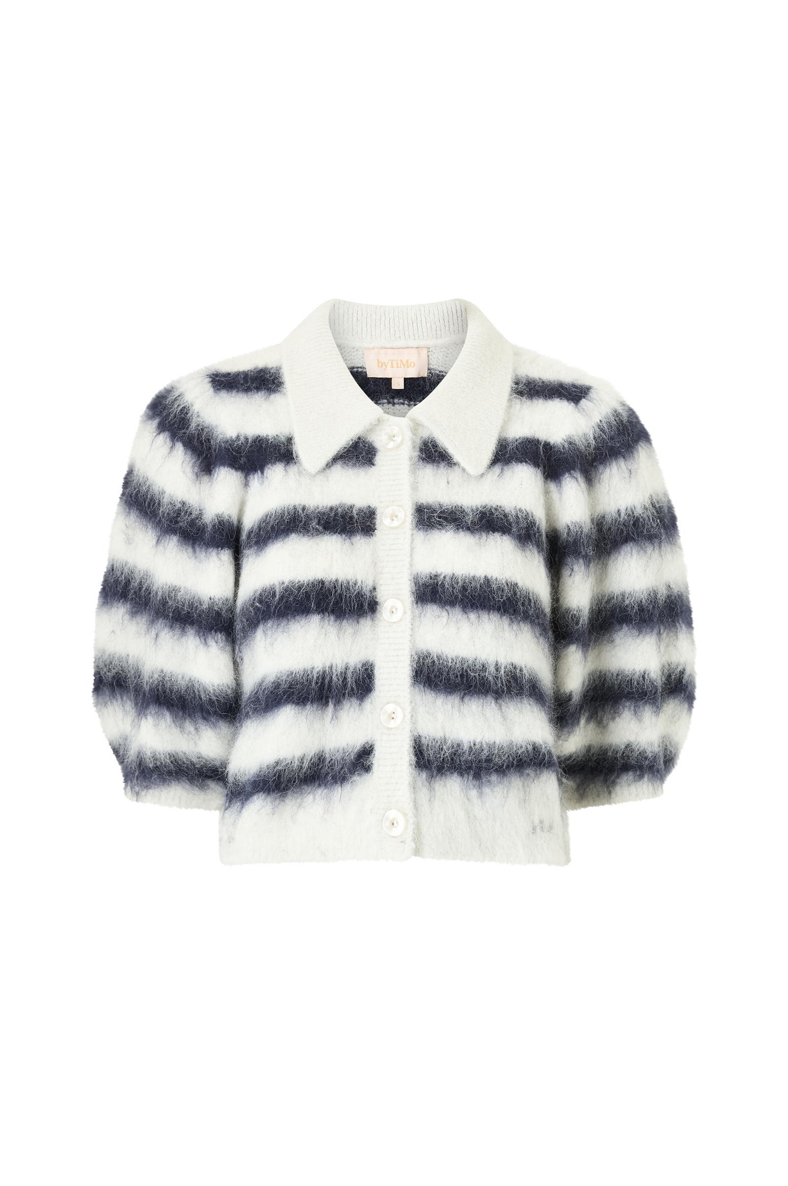 • Fintstrikket cardigan i alpakablanding med håret overflade• Ribstrikket krave• Halvlange, brede pufærmer• Knapper foran• Ribstrik ved manchetterne og ved nederste kant
