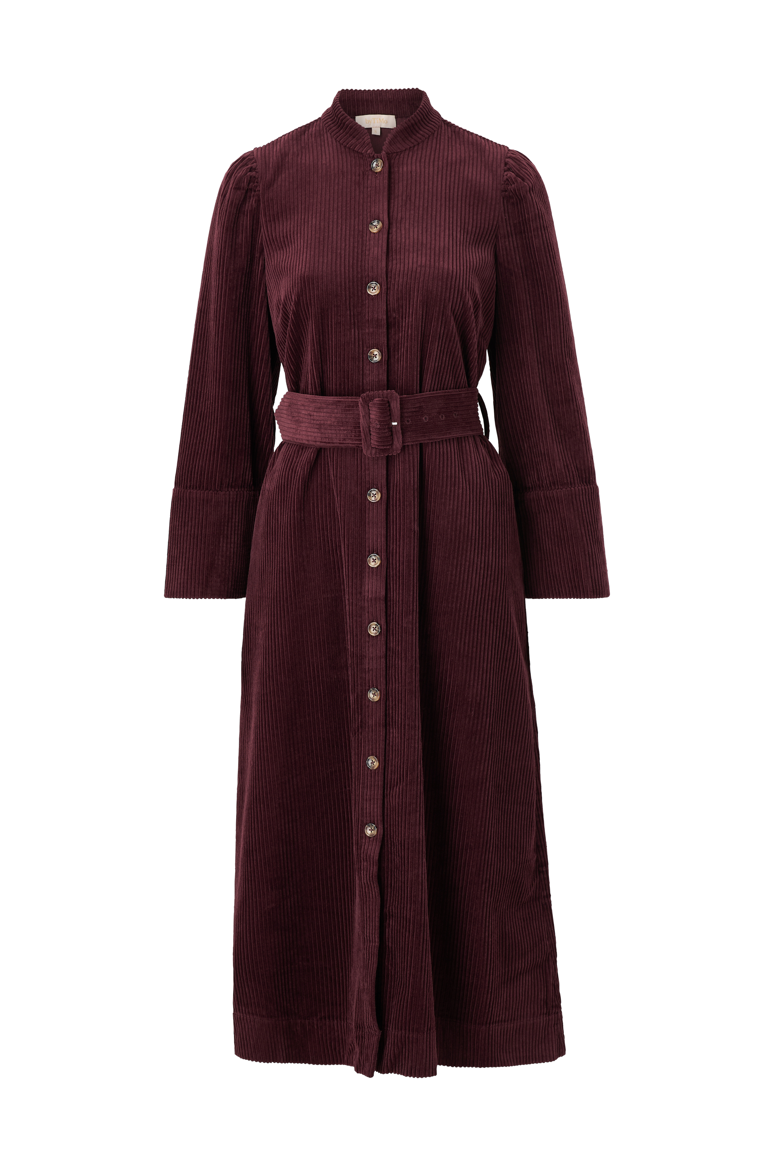 • Lang kjole i kraftig fløjl• Rund, halvhøj krave• Dekorative knapper hele vejen frem• Skulderpuder• Ballonærmer med svaj med brede manchetter• Aftageligt bælte• Sidelommer• Nederdel med svaj• Foret• Længde: 129 cm i størrelse S