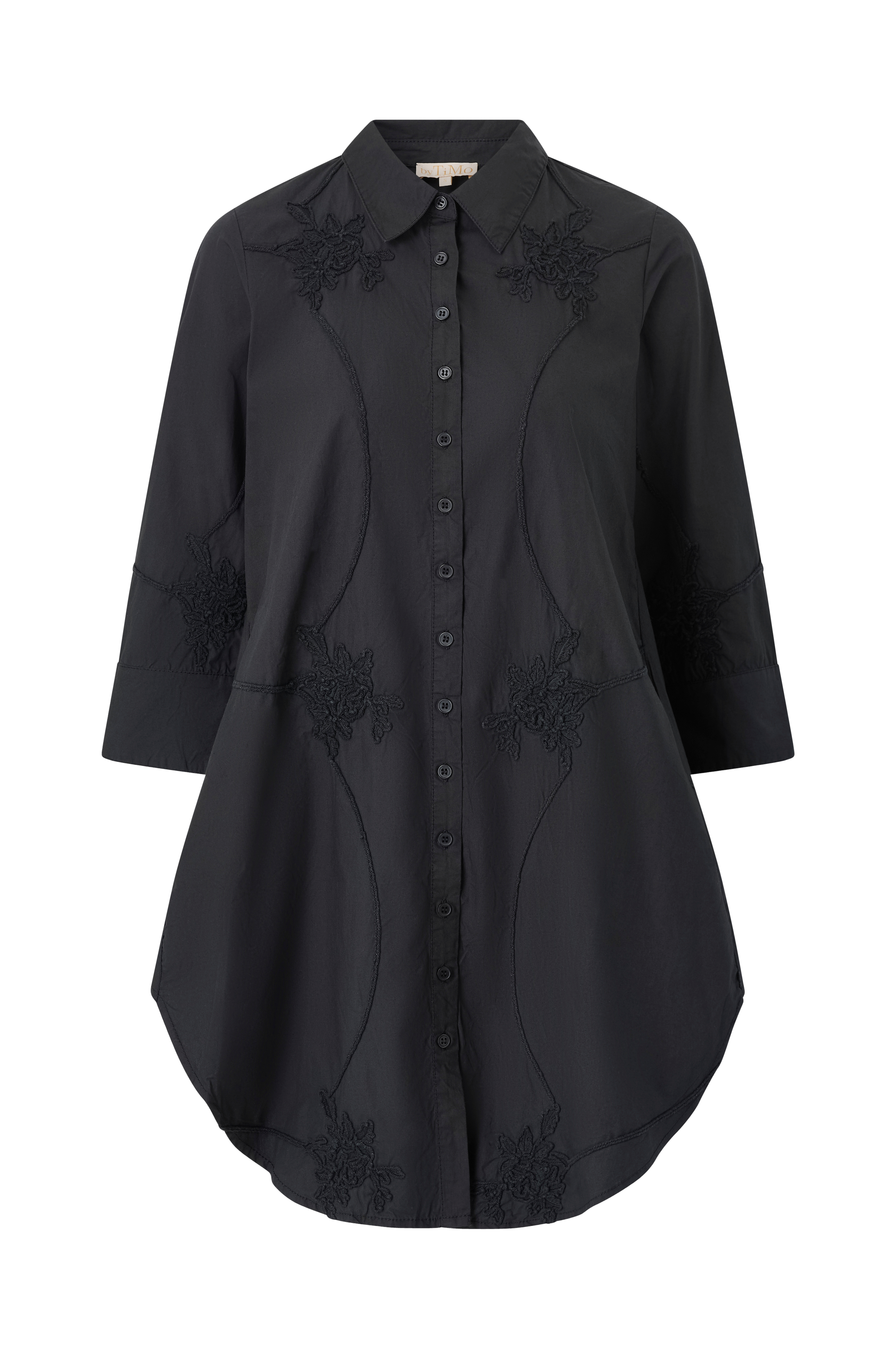 • Kjole i bomuldspoplin med krave• Dekorative broderier overalt• Knapper hele vejen frem• 3/4 lange ærmer med brede manchetter• Nederdel med svaj med asymmetrisk søm• Længde: 93 cm i størrelse S