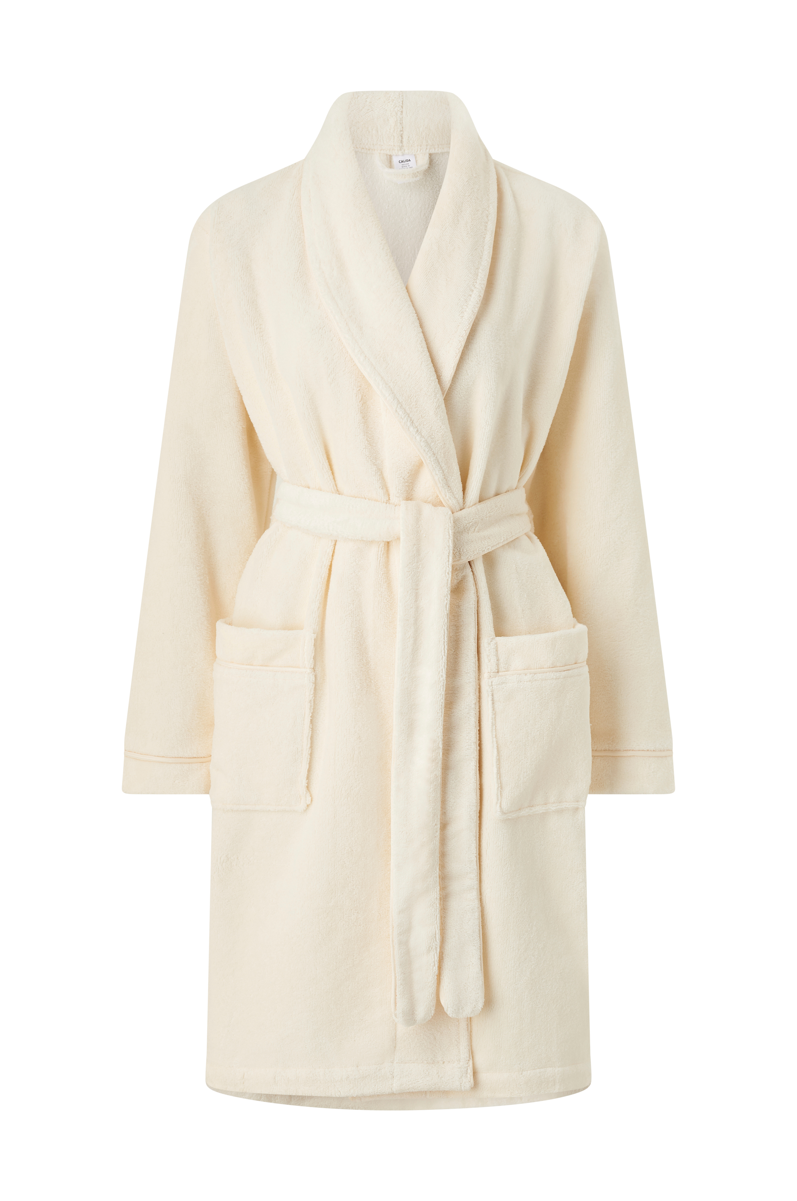 • Bæltespænde ved taljen• Lommer foran• Fremstillet af blød velour med inderside i frotté