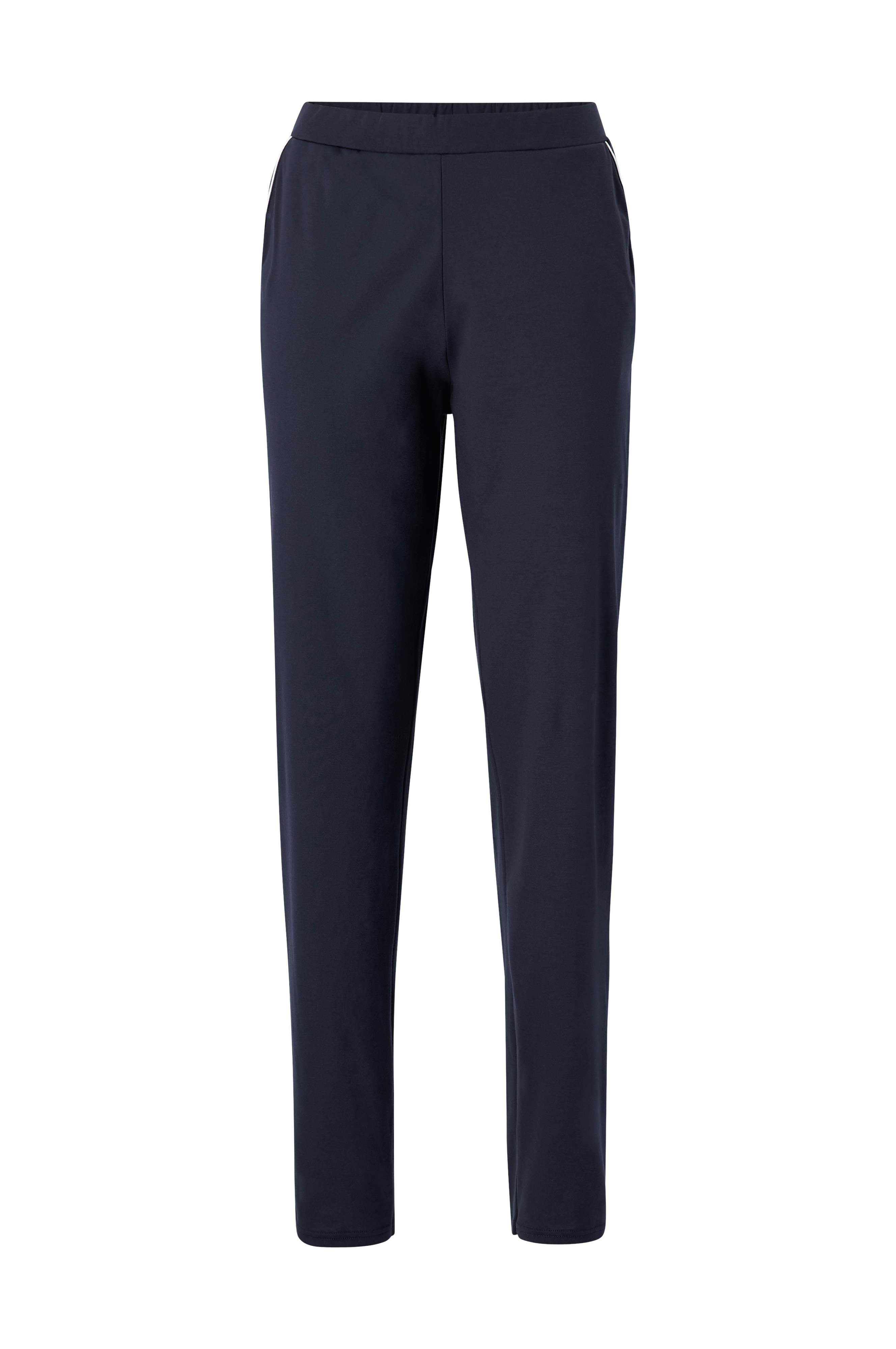 En superskøn buks i bomuldsjersey, som kan bruges som pyjamas eller hverdagsbuks. Lige, lange ben som bliver smallere nedefter. Elastisk talje og to lommer. Indvendig benlængde ca. 77 cm i str. S.