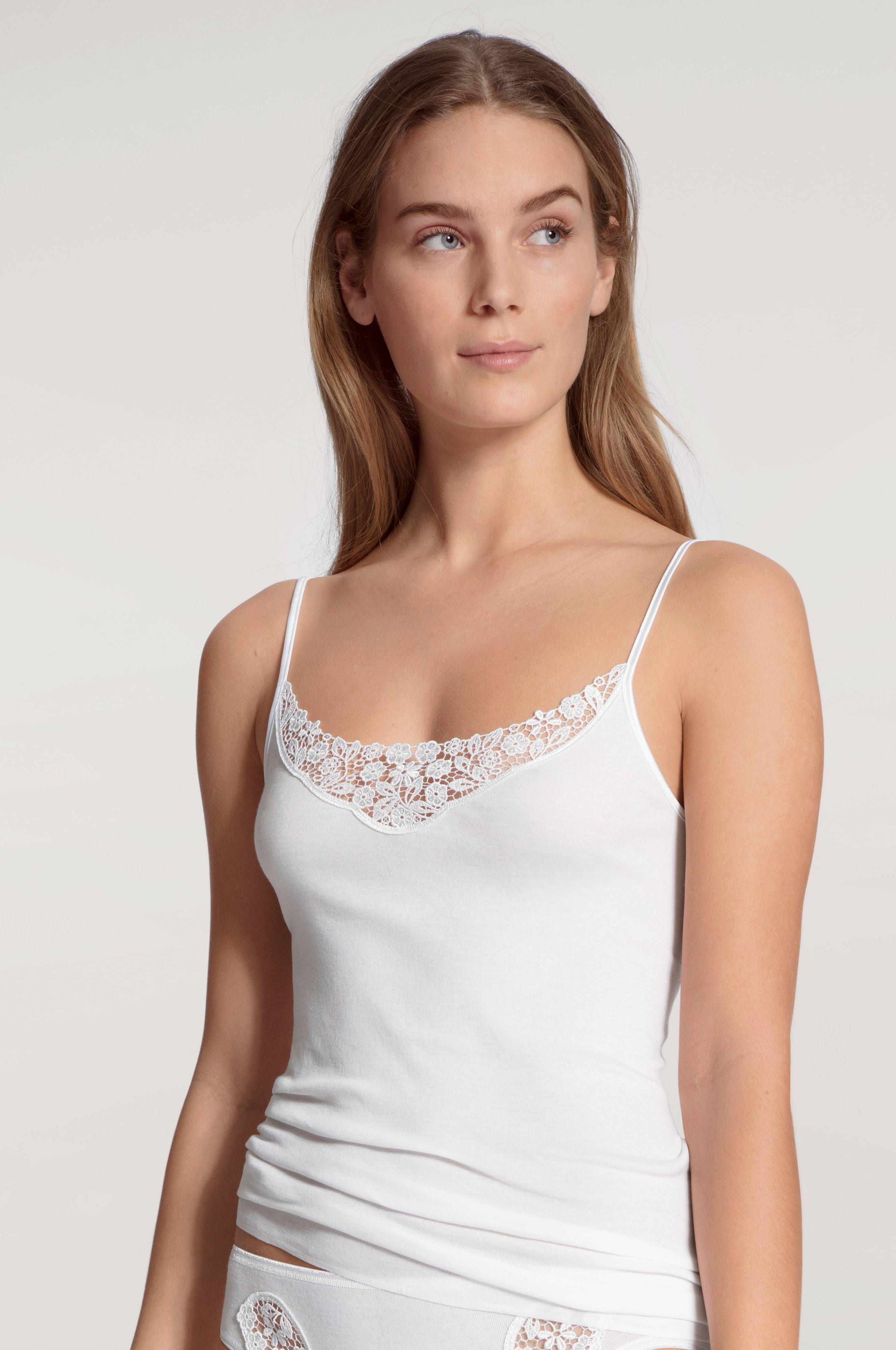 • Blød undertrøje med tynde, justérbare skulderstropper• Blondeindlæg oppe foran• Fremstillet af strækjersey