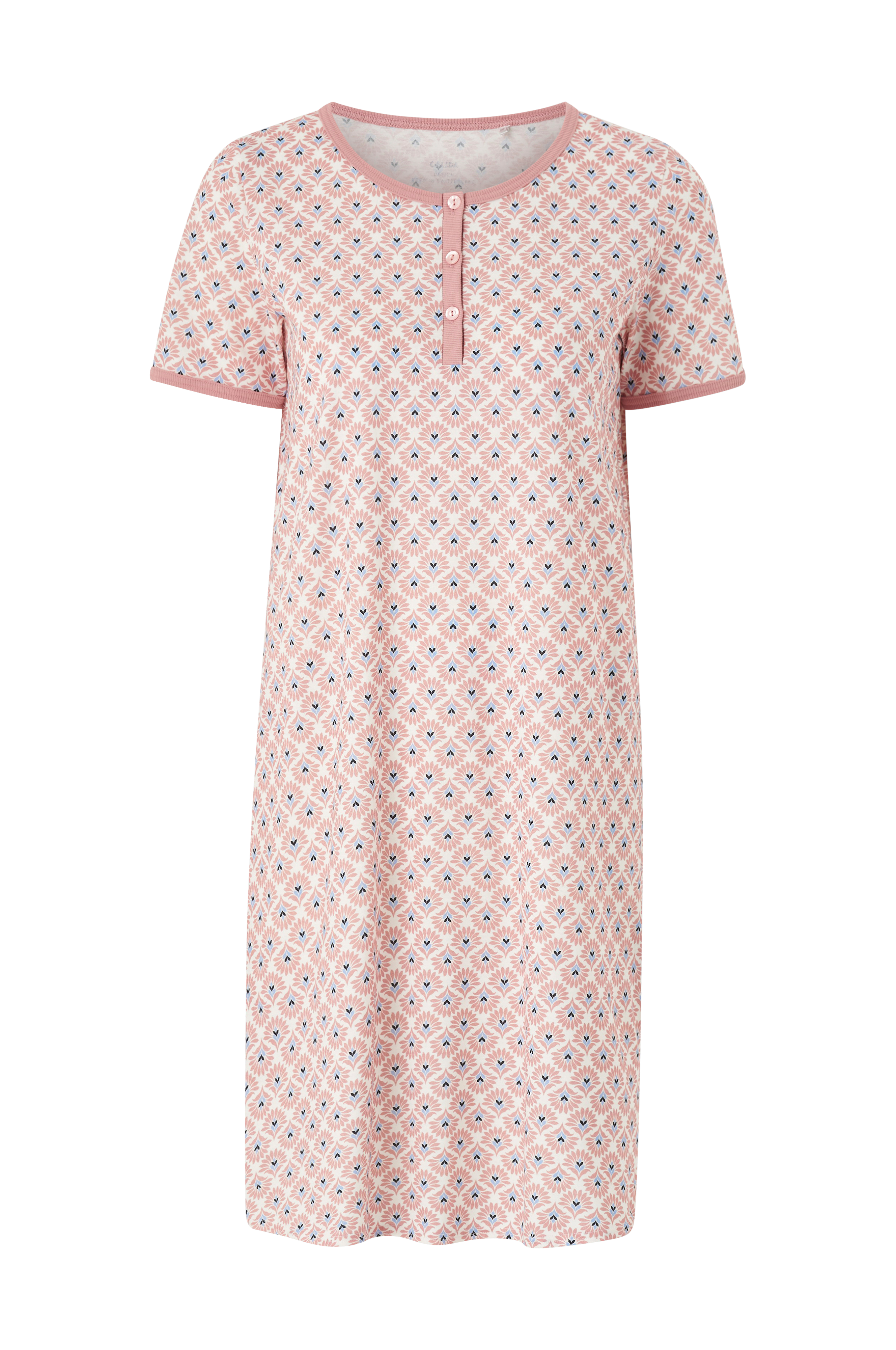 • Fremstillet af blød, glat bomuld• Rund halsudskæring• Tre knapper foran• Korte ærmer med ribbede kanter• Slidser i siderne