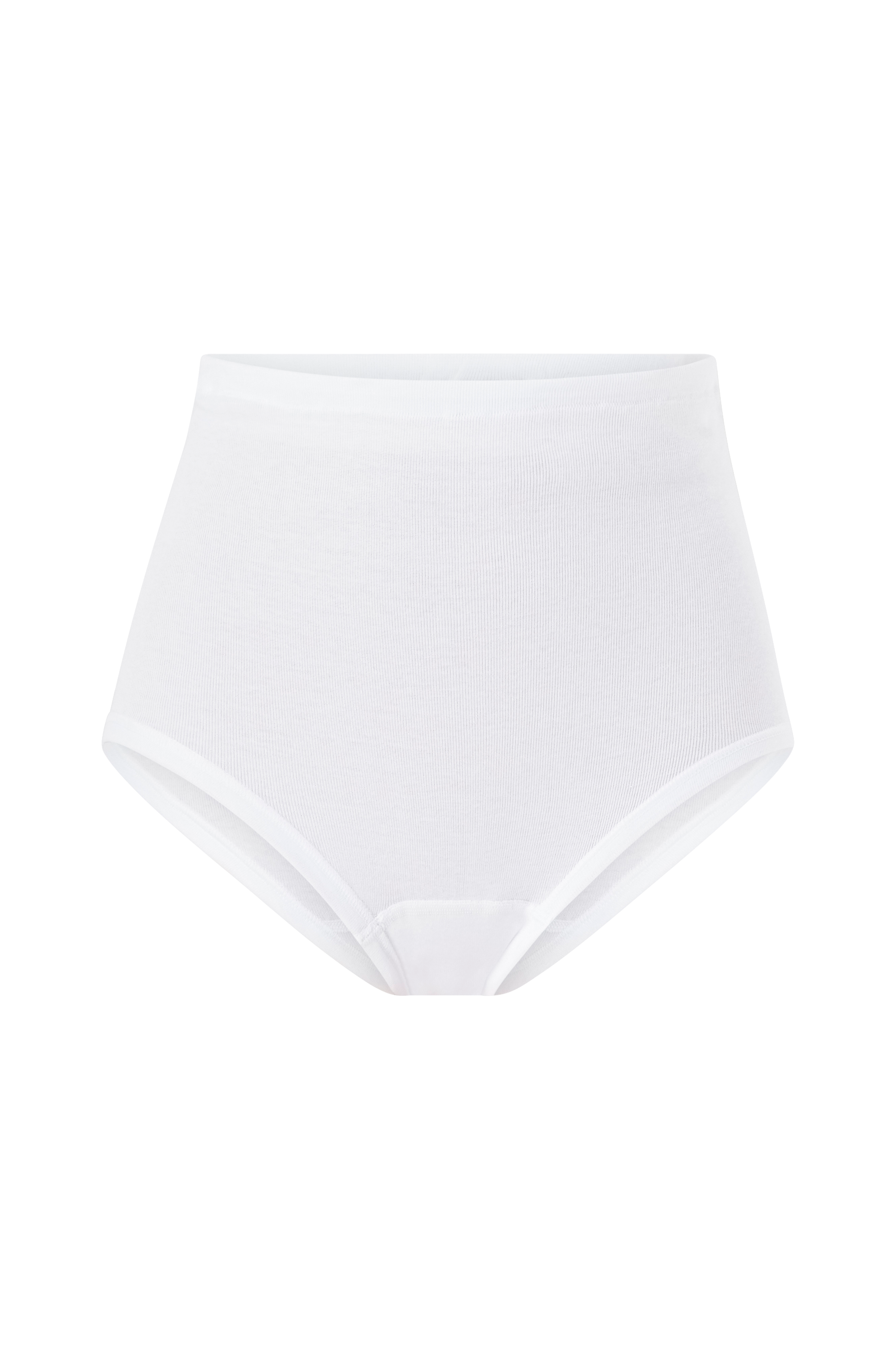 • Høj model• Elastisk talje• Ribstrik på benåbningerne• Foret skridt
