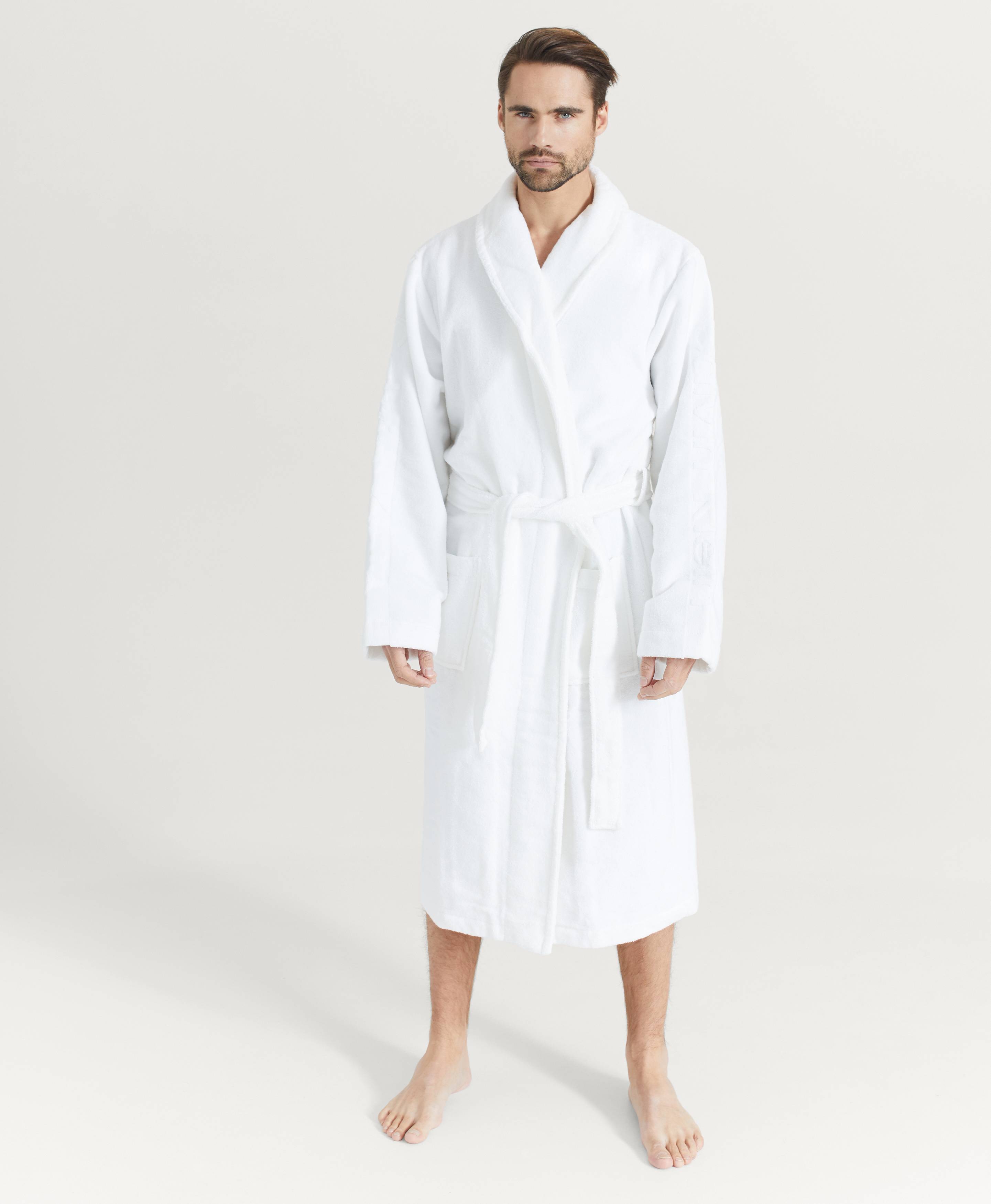 Morgenkåbe Robe fra Calvin Klein i skøn bomuldsfrotté med bindebælte i taljen. To lommer. Længde ca. 118 cm i str. S/M.