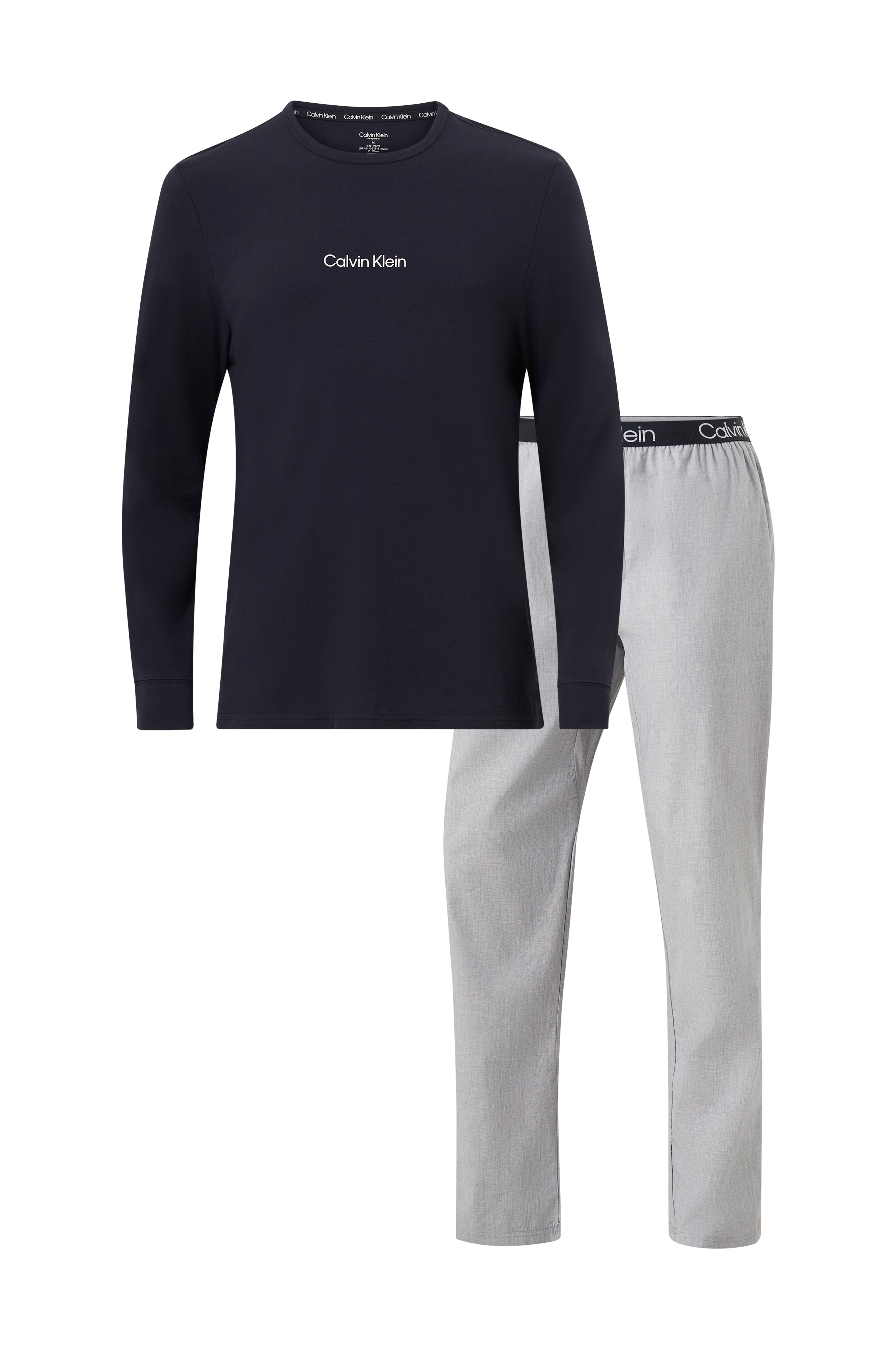 Pyjamassæt med langærmet T-shirt i bomuldsjersey med stretch og bukser i vævet kvalitet. T-shirten har rund halsudskæring og printet logo foran. Bukserne har elastiktalje med logo rundt om. Skjult knapgylp og lommer i siderne.