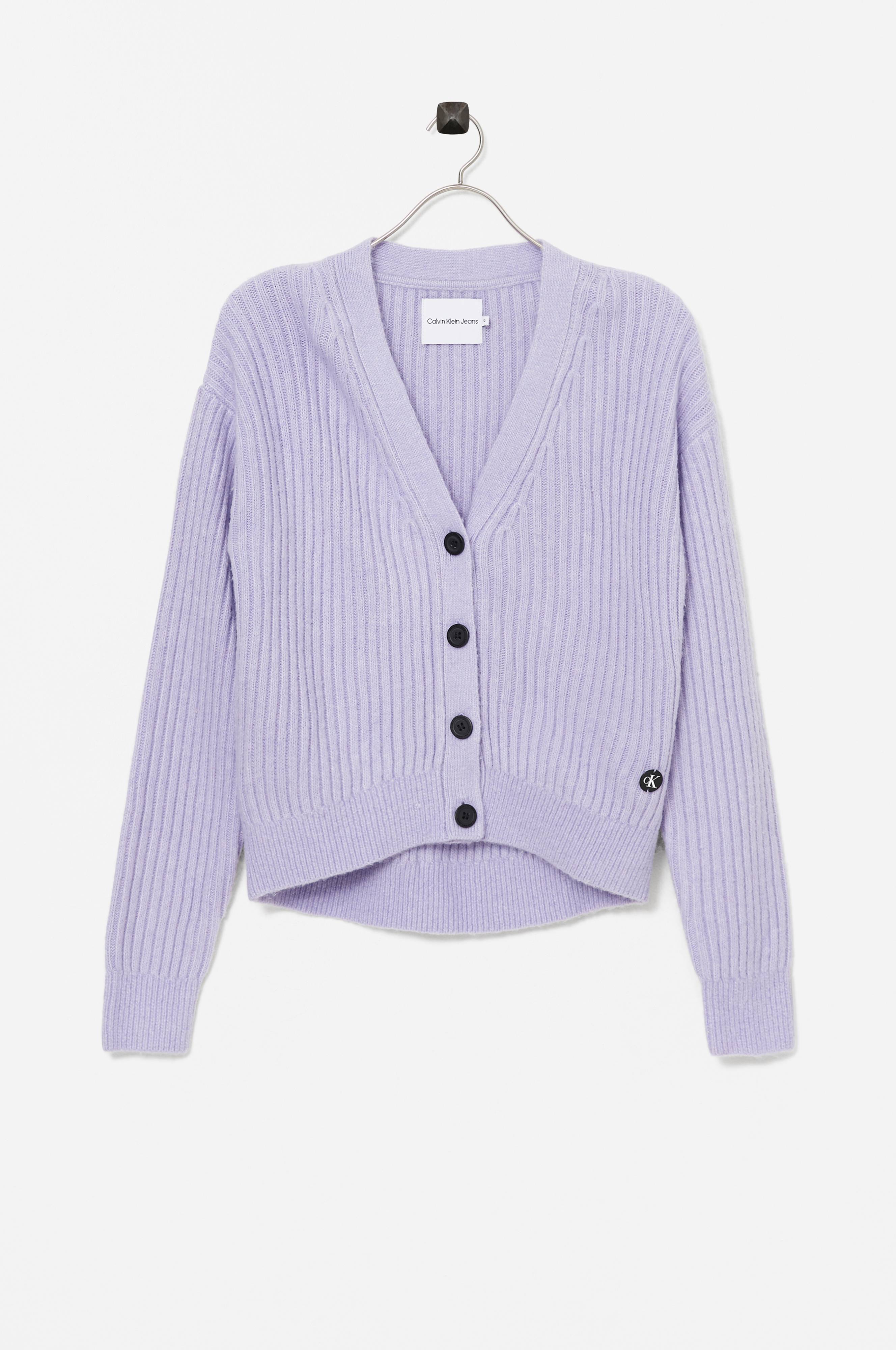 • V-udskæring• Knapper foran• Blød, ribstrikket kvalitet• Nedsænkede skuldre