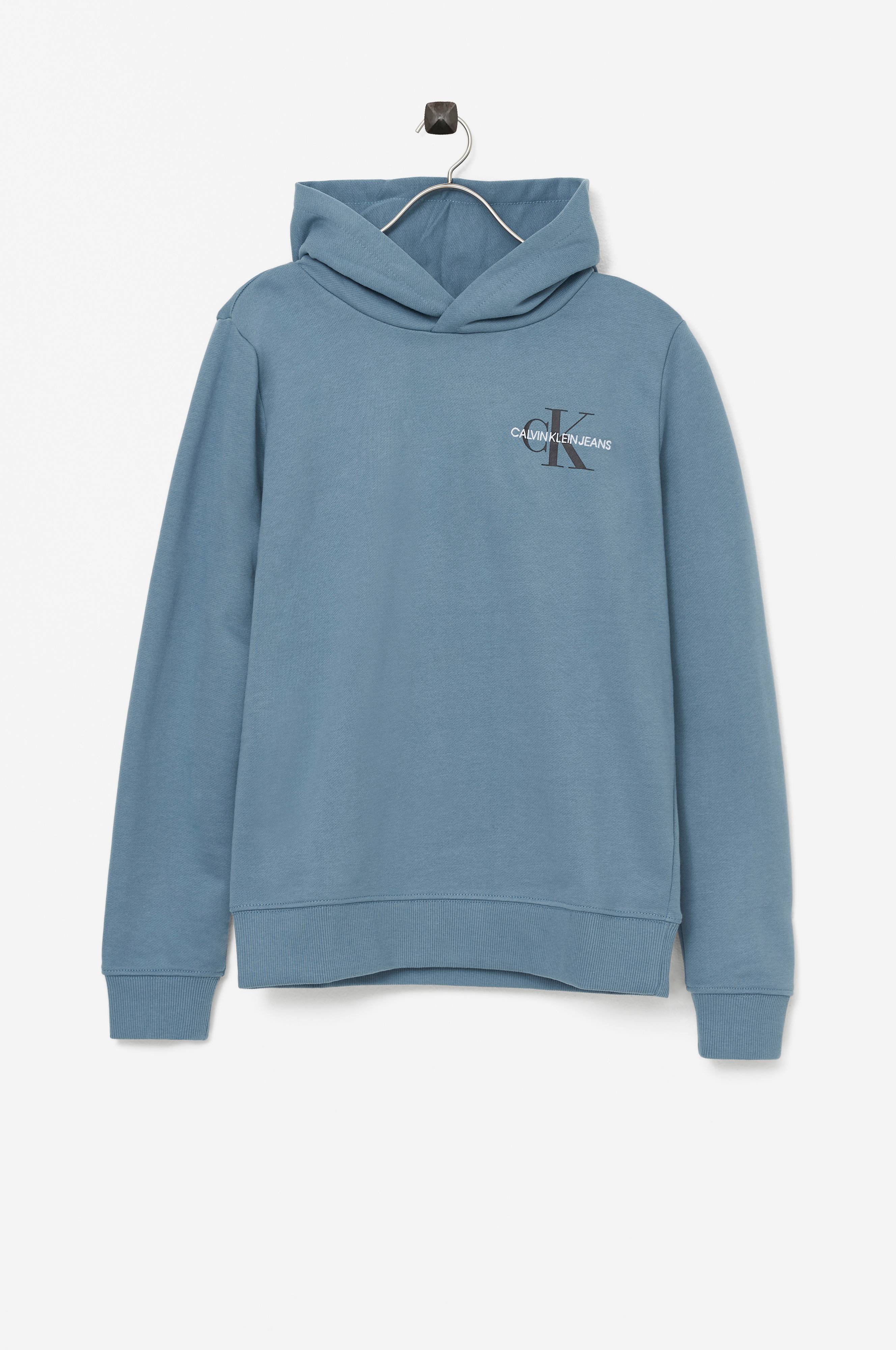 Hættetrøje i økologisk bomuld med print og broderi på brystet. Rib i ærmekant og kanten forneden.