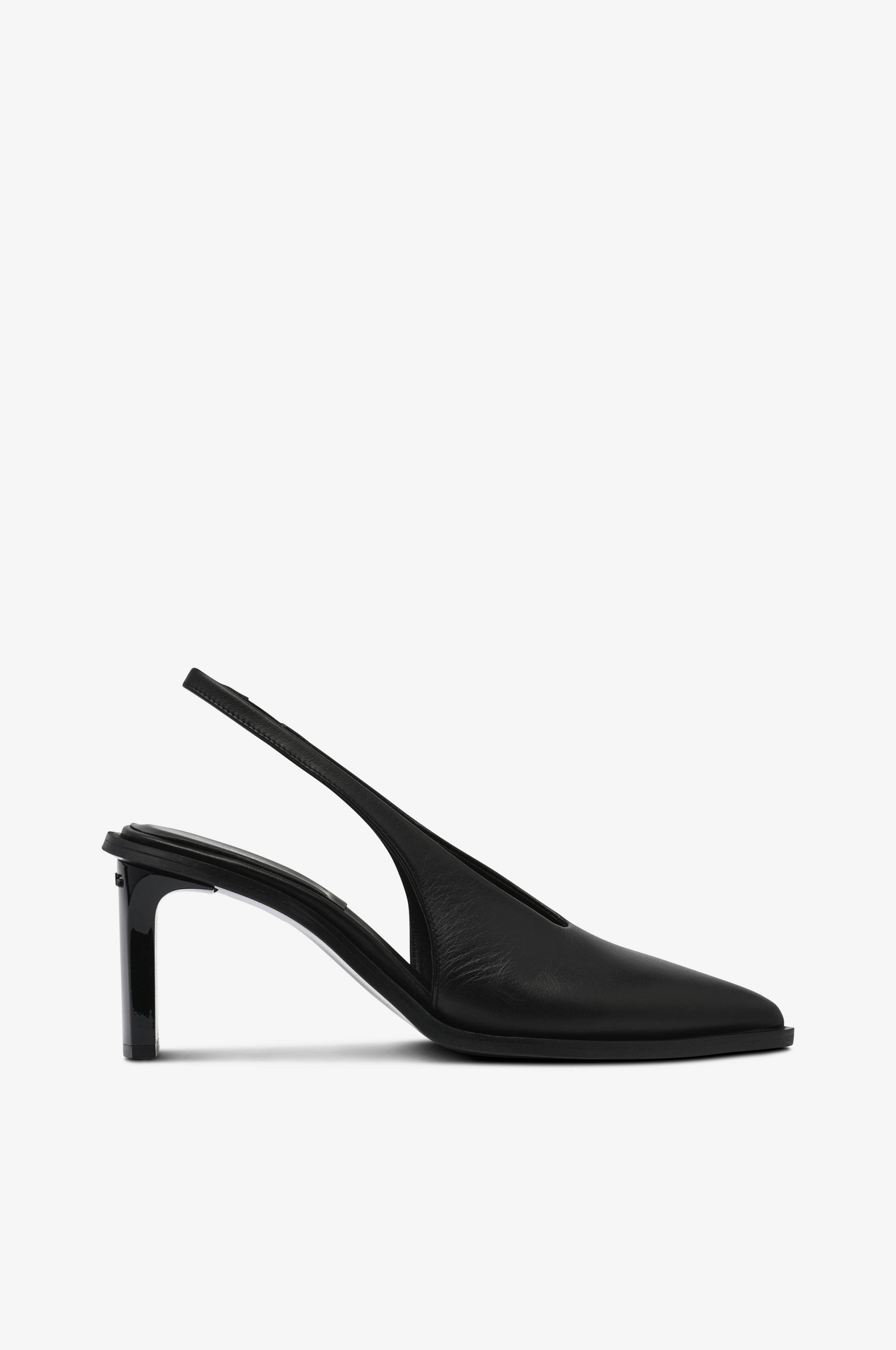 • Slingback i læder• Spids snude• Rem omkring hælen• Blank hæl i akryl• Hælhøjde: 7,5 cm