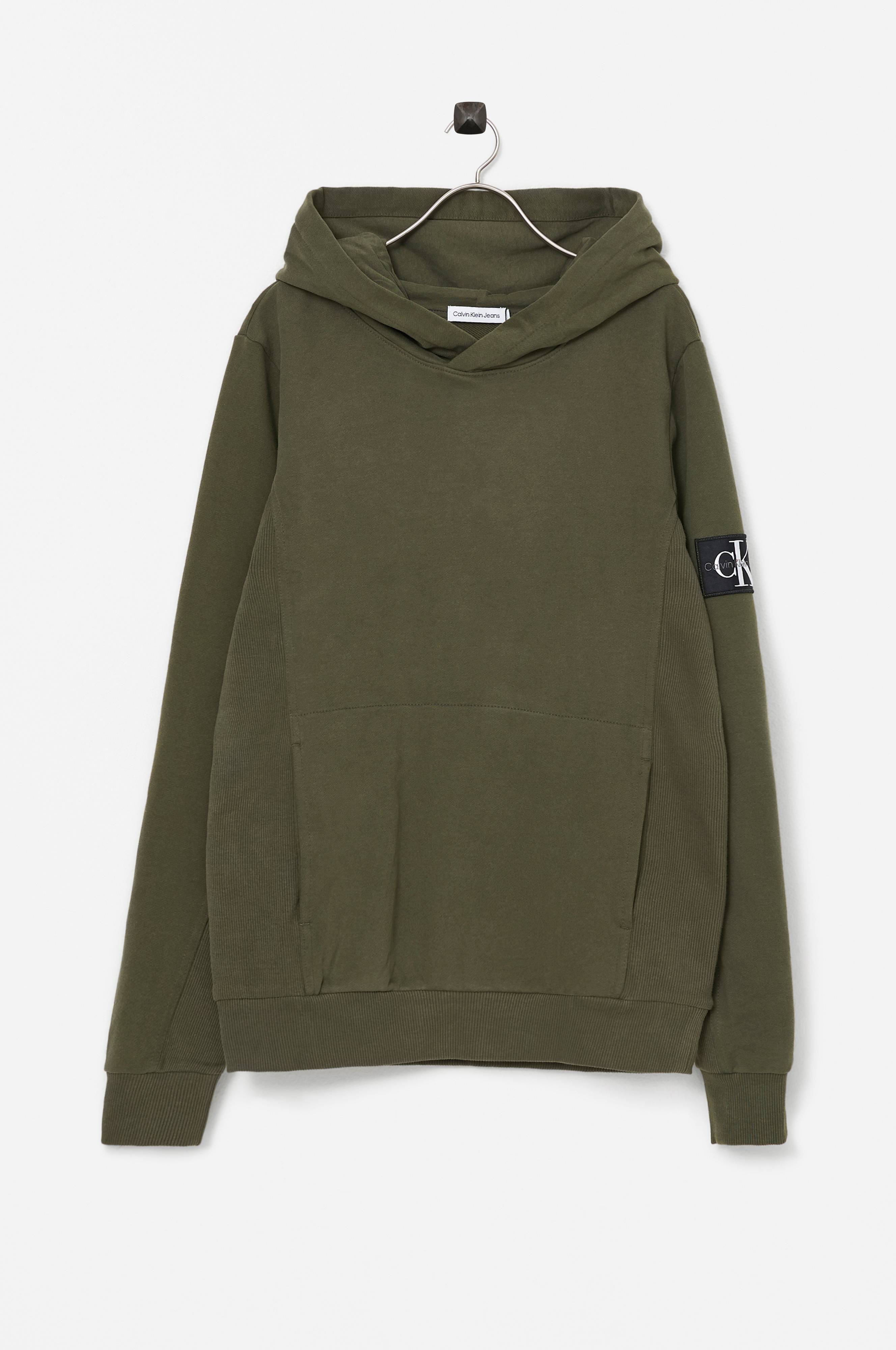 Hoodie fra Calvin Klein som har ribpaneler i hver side og en patch på det ene ærme. Hoodien har en kængurulomme og ribkant i ærmekant samt kanten forneden. Lige snit og normal pasform.