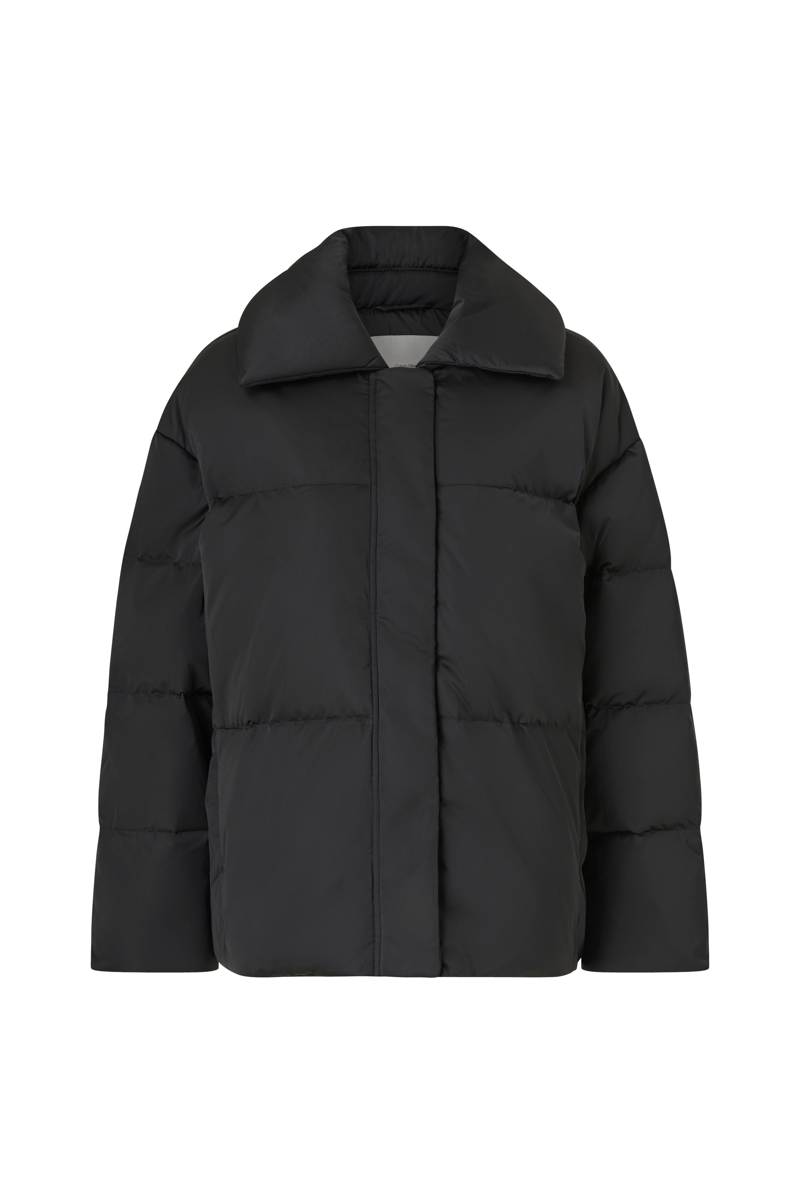 • Foret jakke med stor krave• To-vejs lynlås• Vindflap over lynlåsen med trykknapper• To store sidelommer med skjult lynlås og trikotfor• Træksnørre ved nederste kant• Længde: 72 cm i størrelse S