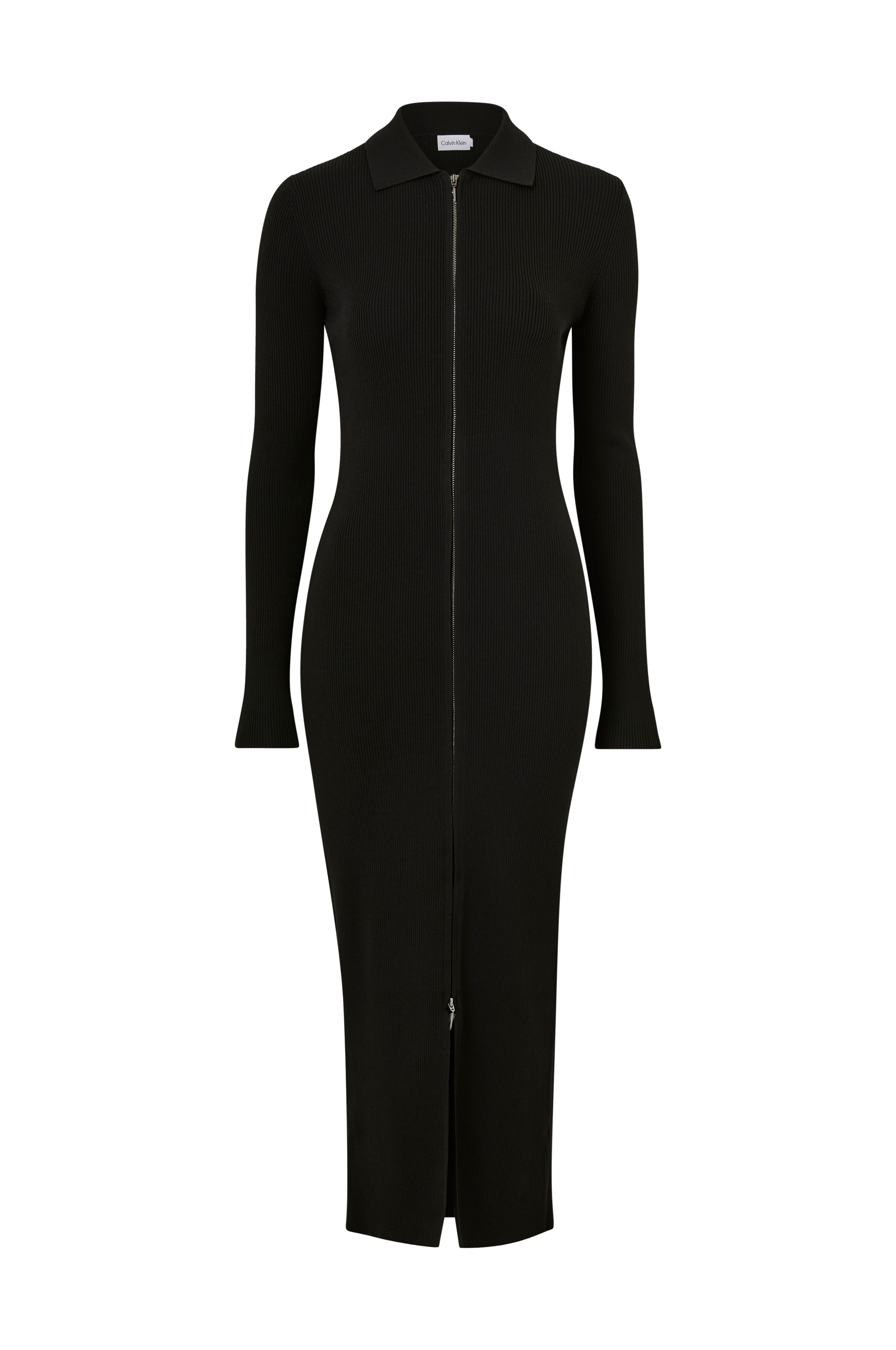 • Ribstrikket kjole med figursyet pasform• Krave• Fuld længde to-vejs lynlås• Længde: 132 cm i størrelse S