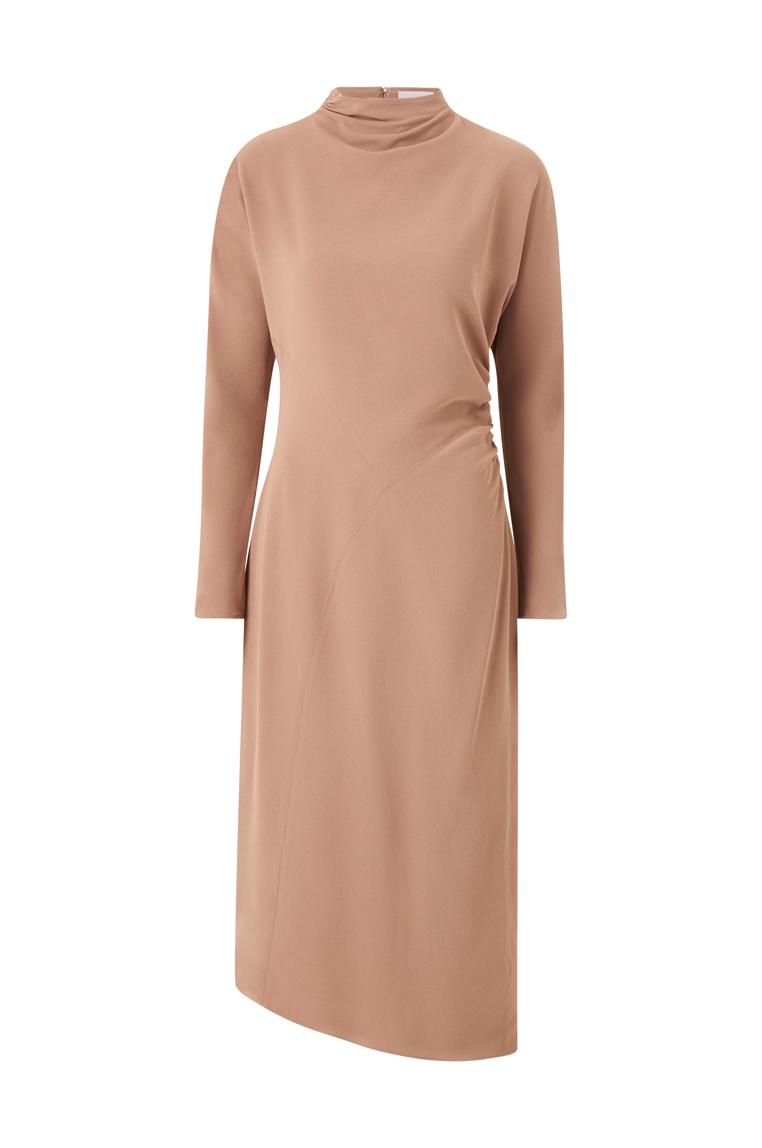 • Let figursyet model med drapering i den ene side• Diagonale dekorative sømme foran• Halvhøj krave med spændelukninger i nakken og åben ryg• Langt, tyndt kimonoærme• Længde: 126 cm i størrelse 36