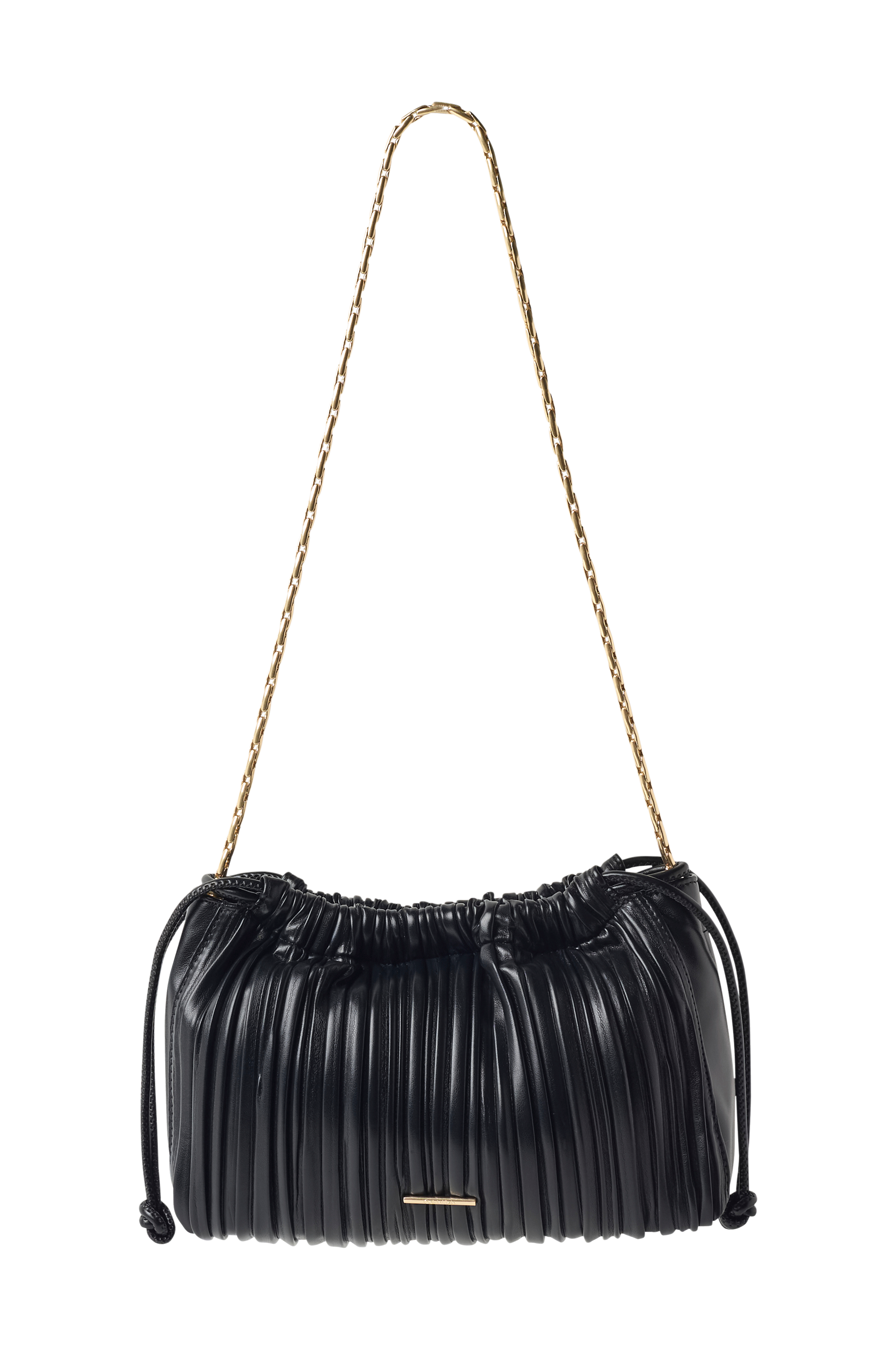 • Plisseret taske i imiteret læder• Metallogo på forsiden• Skulderstrop i metal• Træksnørre rundt om åbningen• Magnetisk lukning• En indvendig Rum med lynlås• Der medfølger en dust bag