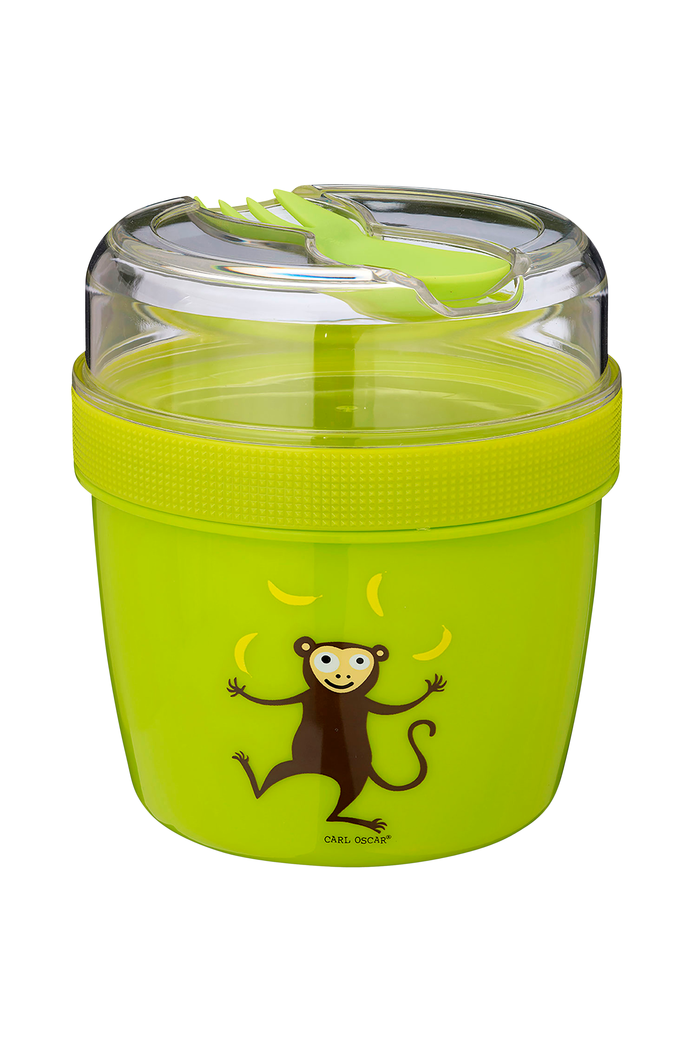 Spis sundt, mens du sparer både penge og miljø sammenlignet med at købe take-away mad. Beholderen har to separate rum. Det større til f.eks. yoghurt, salat eller frugt og låget til nødder, müsli eller croutoner. De to rum er adskilte for at holde indholdet friskt indtil det skal spises.