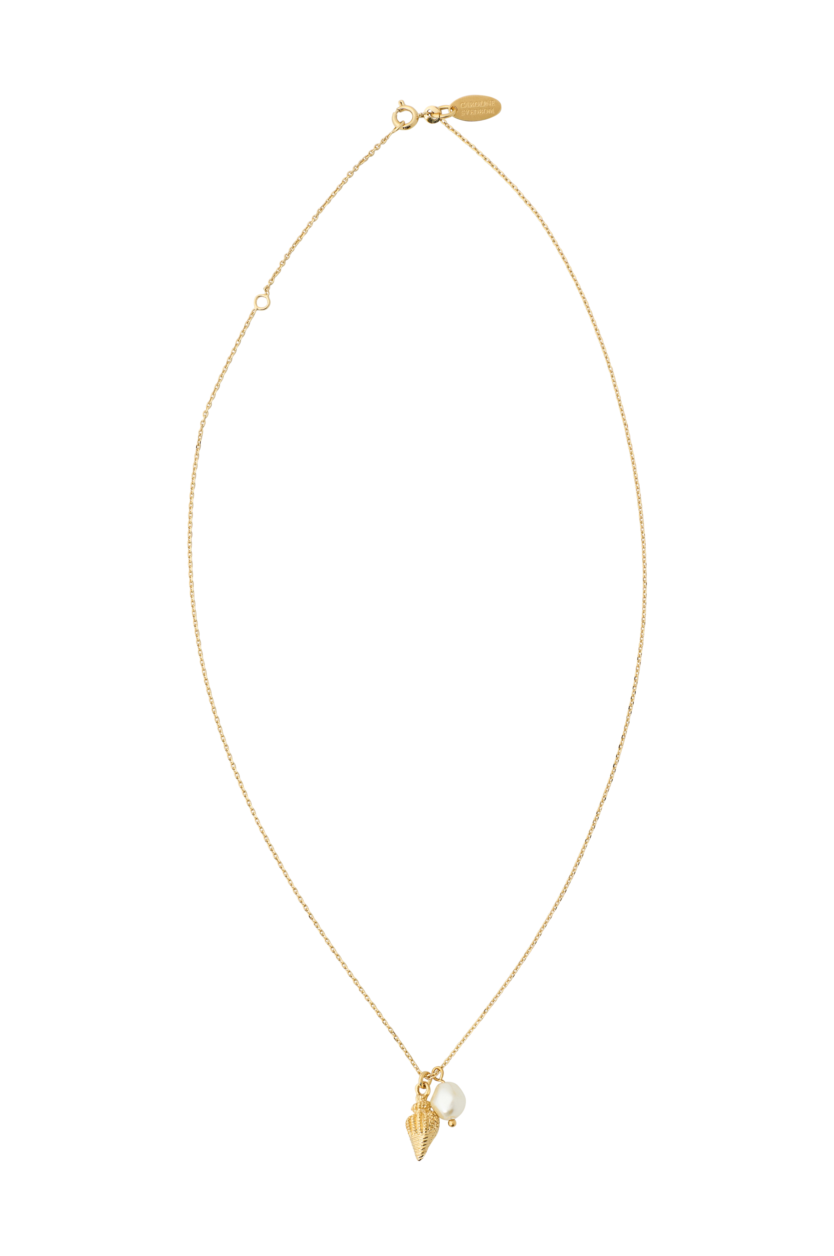 • 18K guldbelægning kæde i messing med muslingeformet vedhæng og perle• Nikkelsikker• Skalstørrelse 1,8 x 0,8 cm• Designet i Sverige, håndlavet i Grækenland