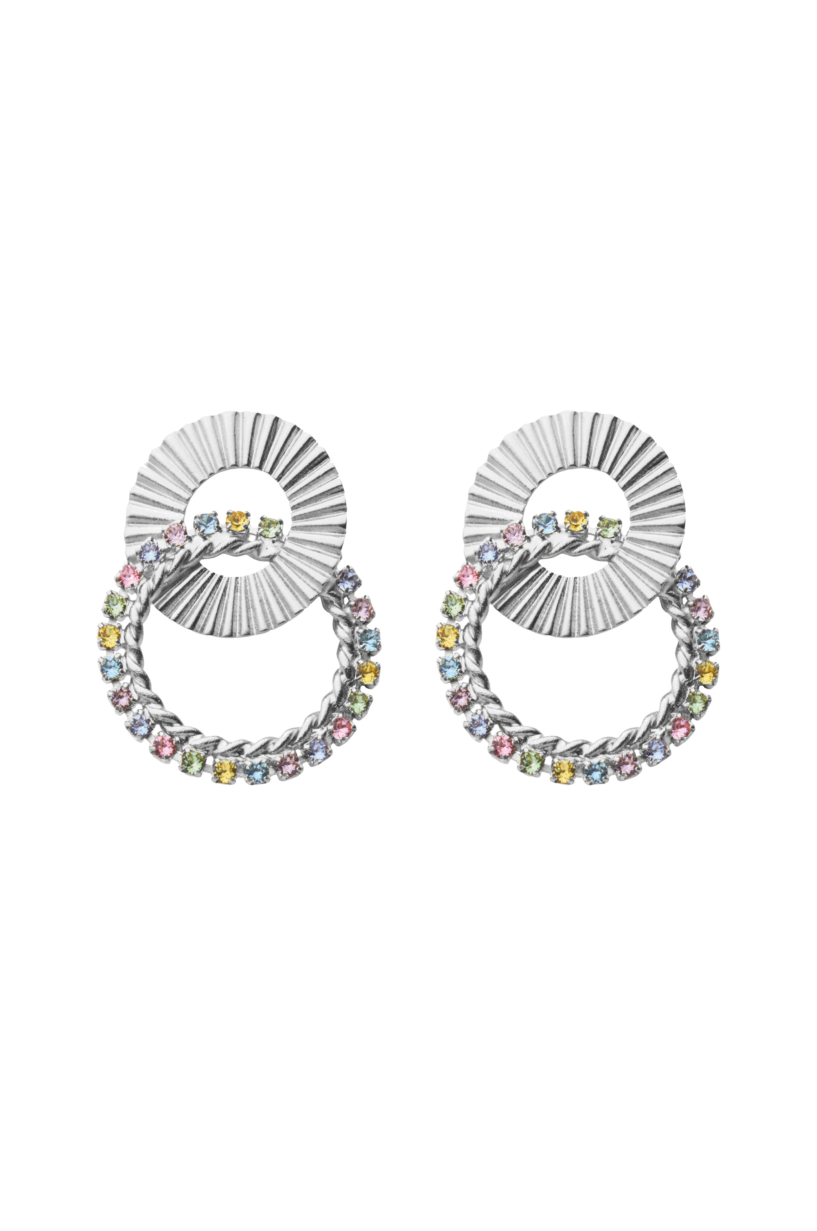 • Gianna-øreringene har et elegant design med pastelfarvede krystaller • Perfekt til at supplere ethvert outfit • Størrelse: 35 x 24 mm • Fremstillet af messing med rhodiumbelægning • Designet i Sverige • Håndlavet i Grækenland.
