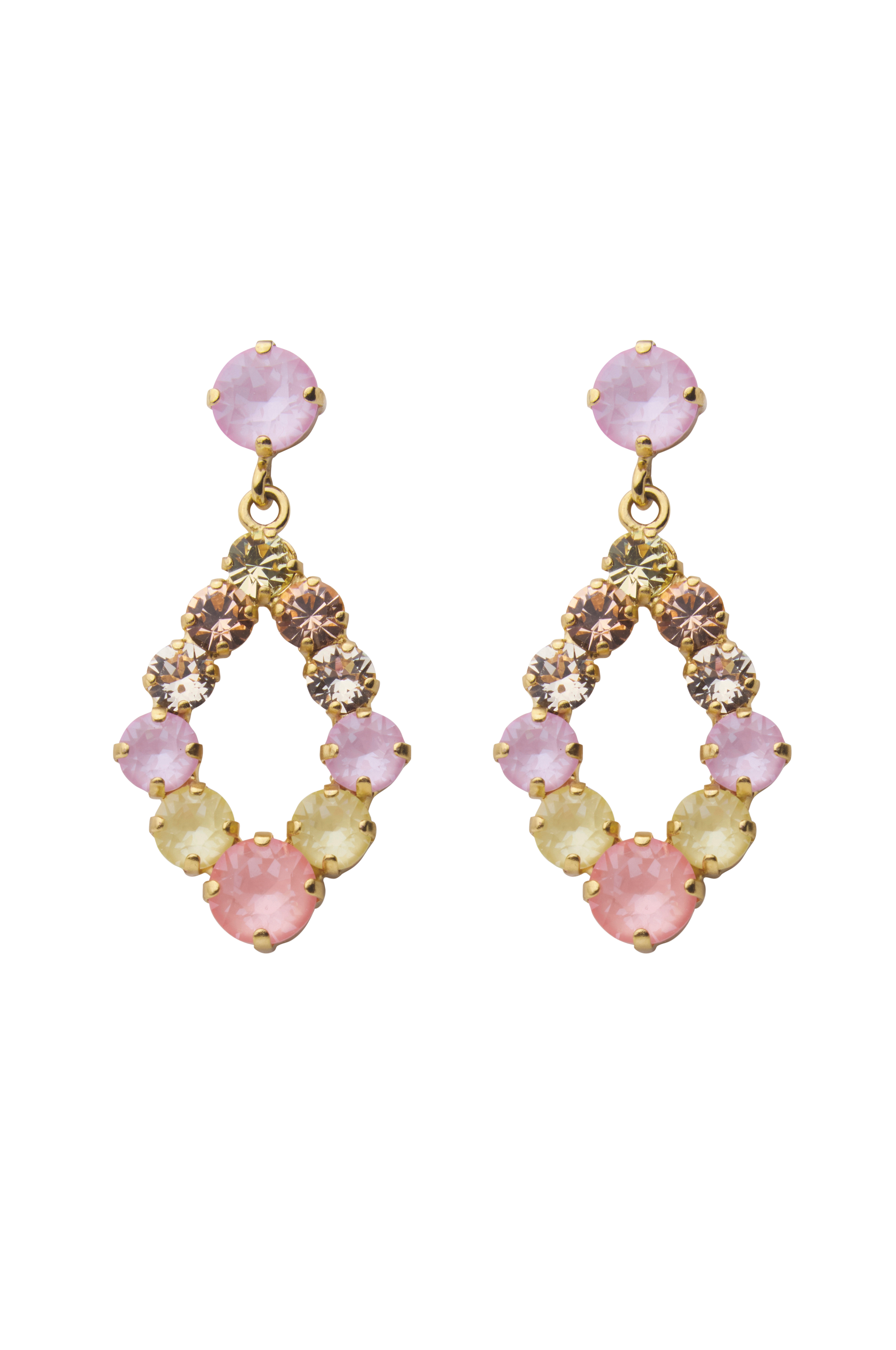 • Dråbeformede øreringe med funklende krystaller i forskellige farver