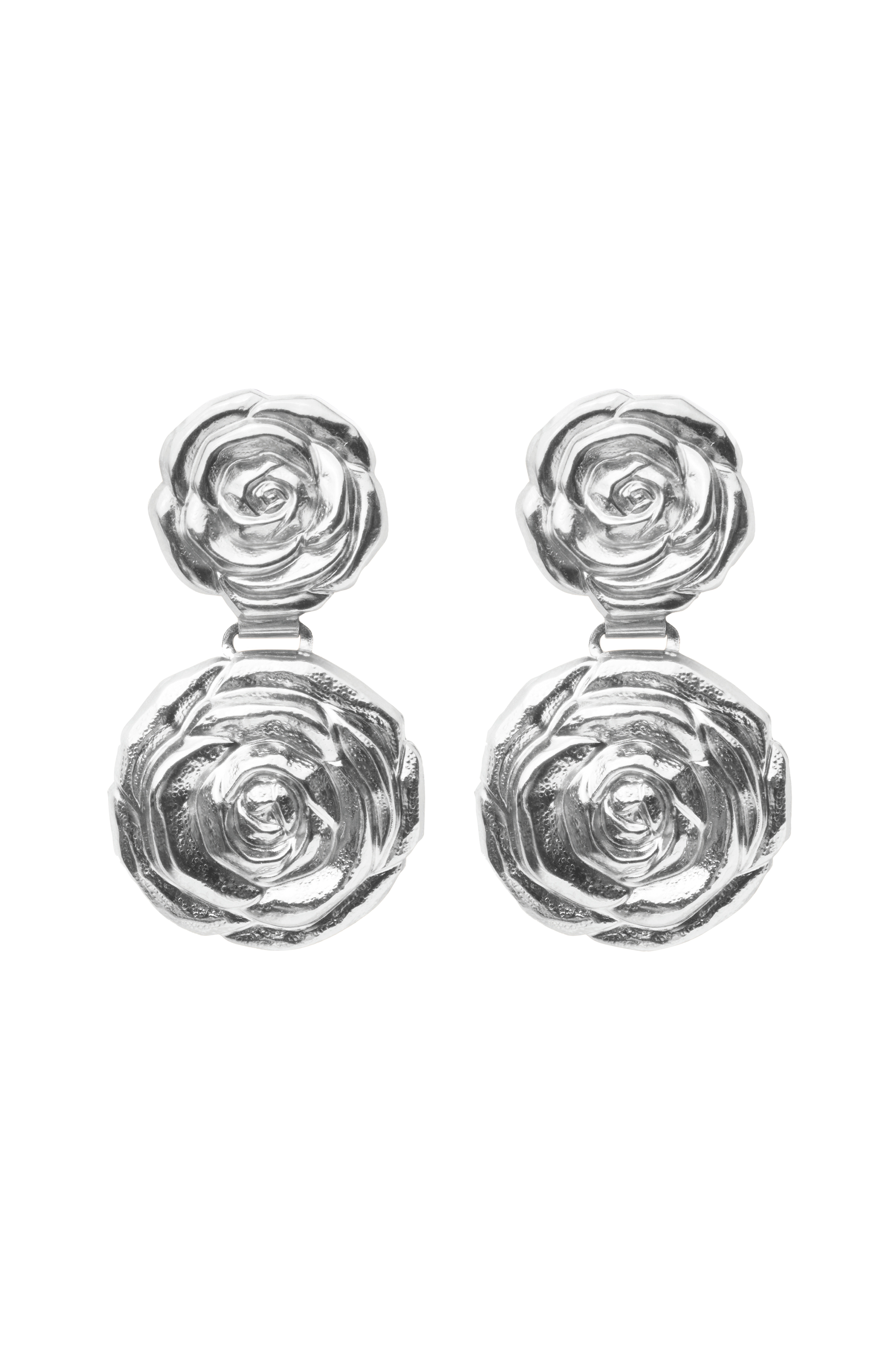 • Statement-øreringe med dobbelt rosedesign • Perfekt til at give et vintageinspireret, luksuriøst touch til ethvert outfit • Størrelse: 50 x 27 mm • Fremstillet af messing med rhodiumbelægning • Designet i Sverige, håndlavet i Grækenland.