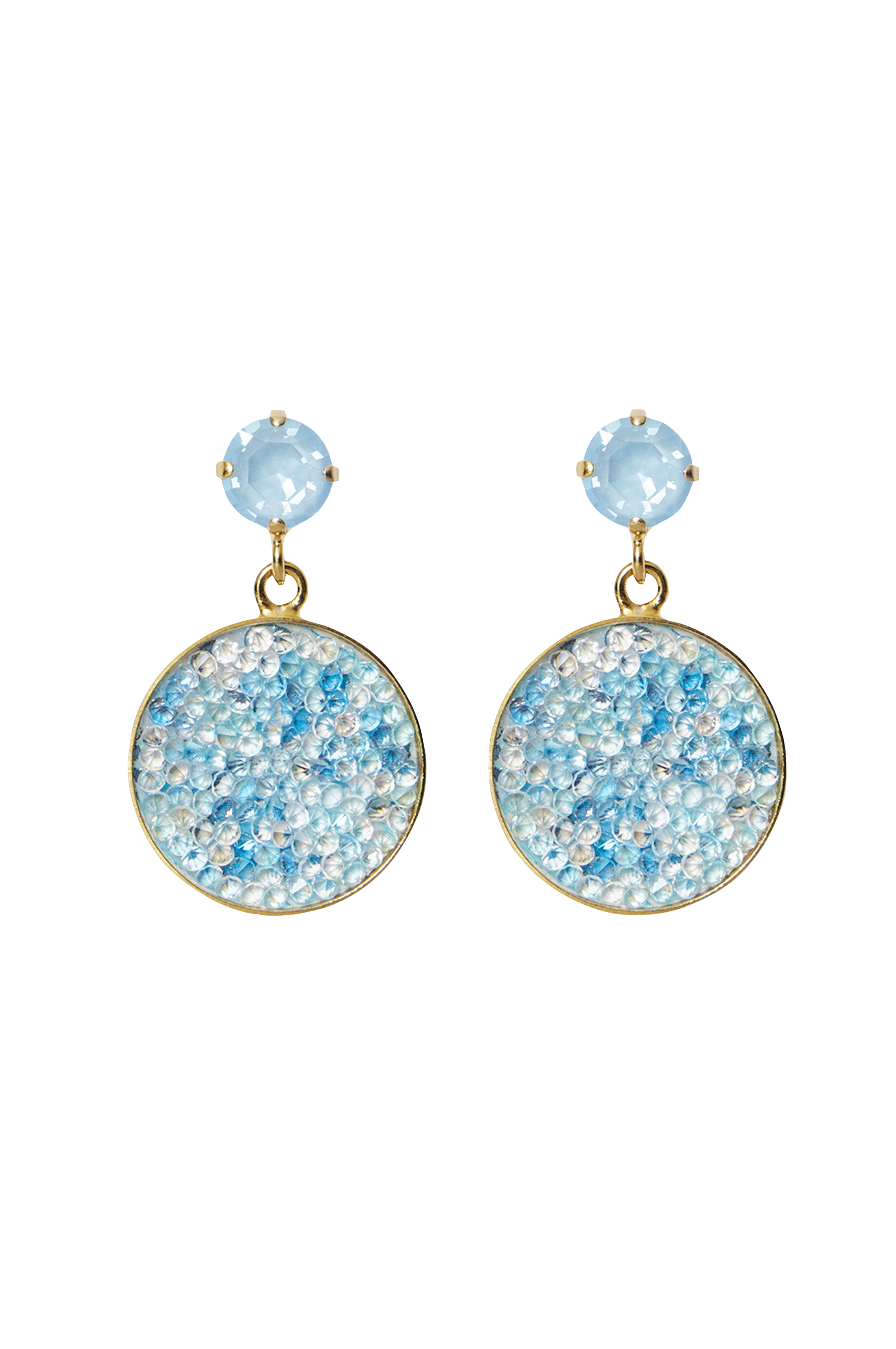 Chloe Earrings er funklende øreringe med en rund plade og små krystaller.