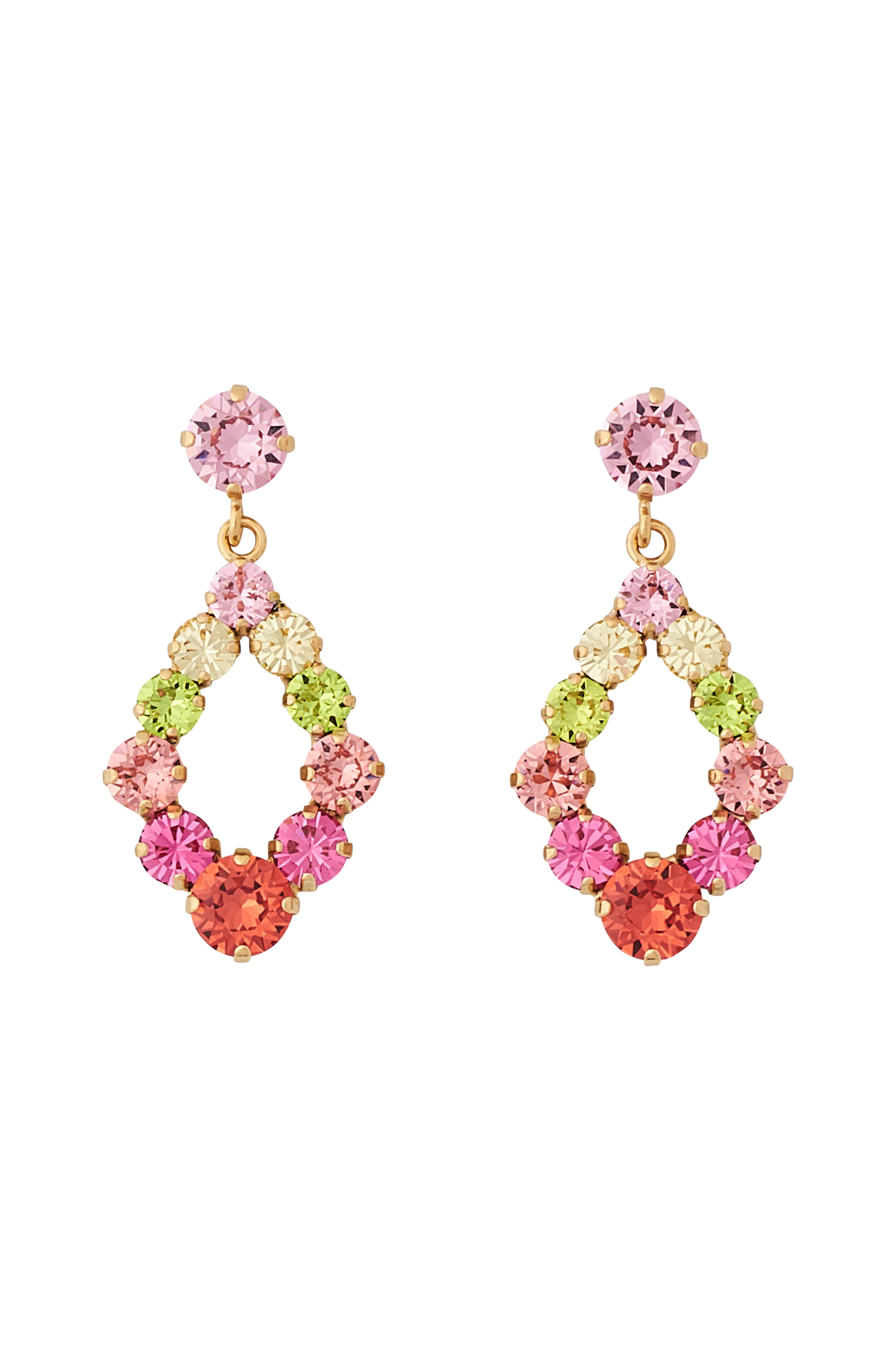 Mini Delia-designet er feminint og en smuk tilføjelse til både hverdagslooket og festkjolen. De dråbeformede øreringe med runde, glitrende krystaller i forskellige nuancer bringer hverdagsglamour til hver dag.