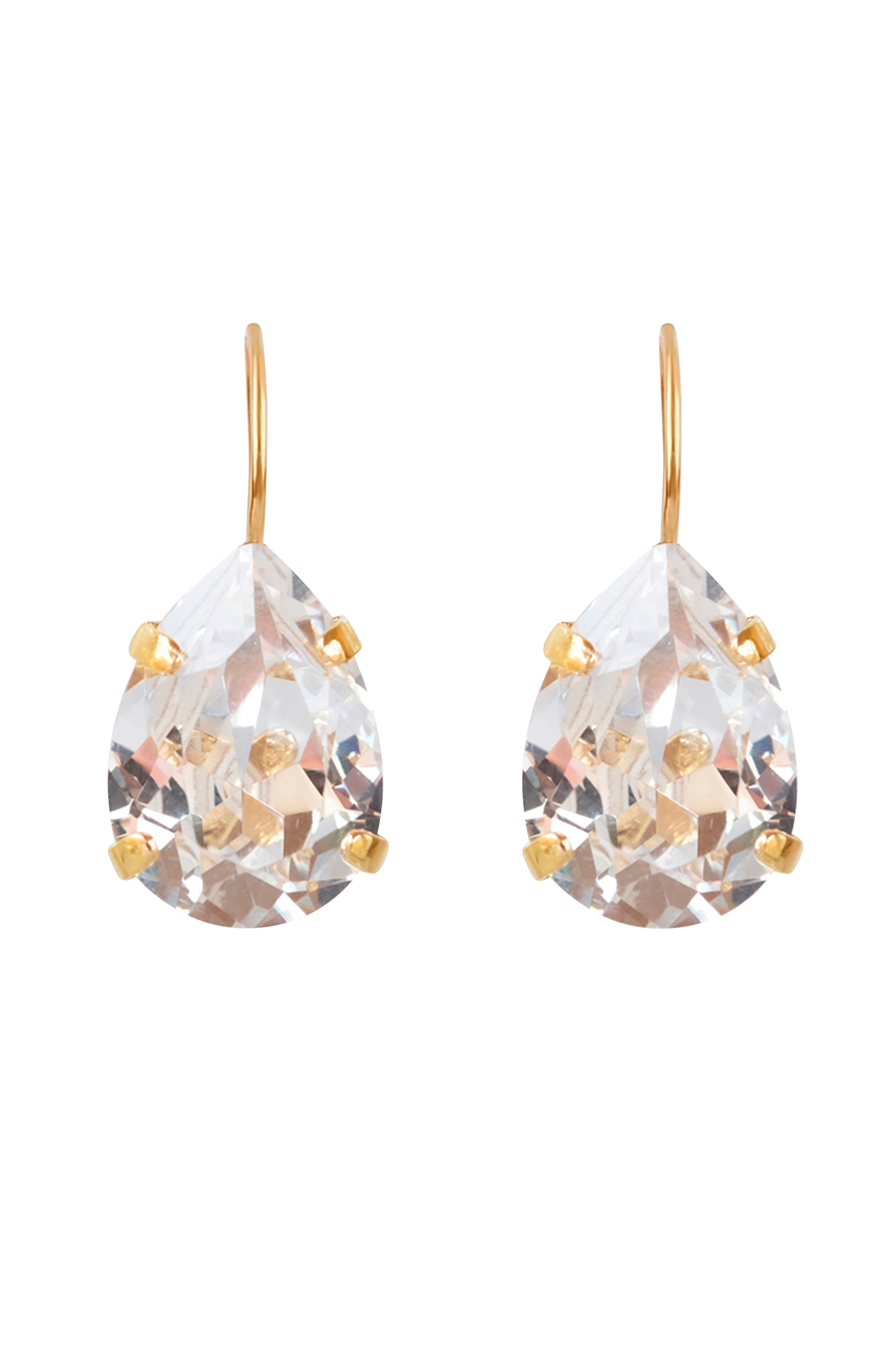 Model med dråbeformede krystaller i højeste kvalitet. Størrelse ca. 10x14 mm. Af forgyldt messing med 18 K guldplettering.