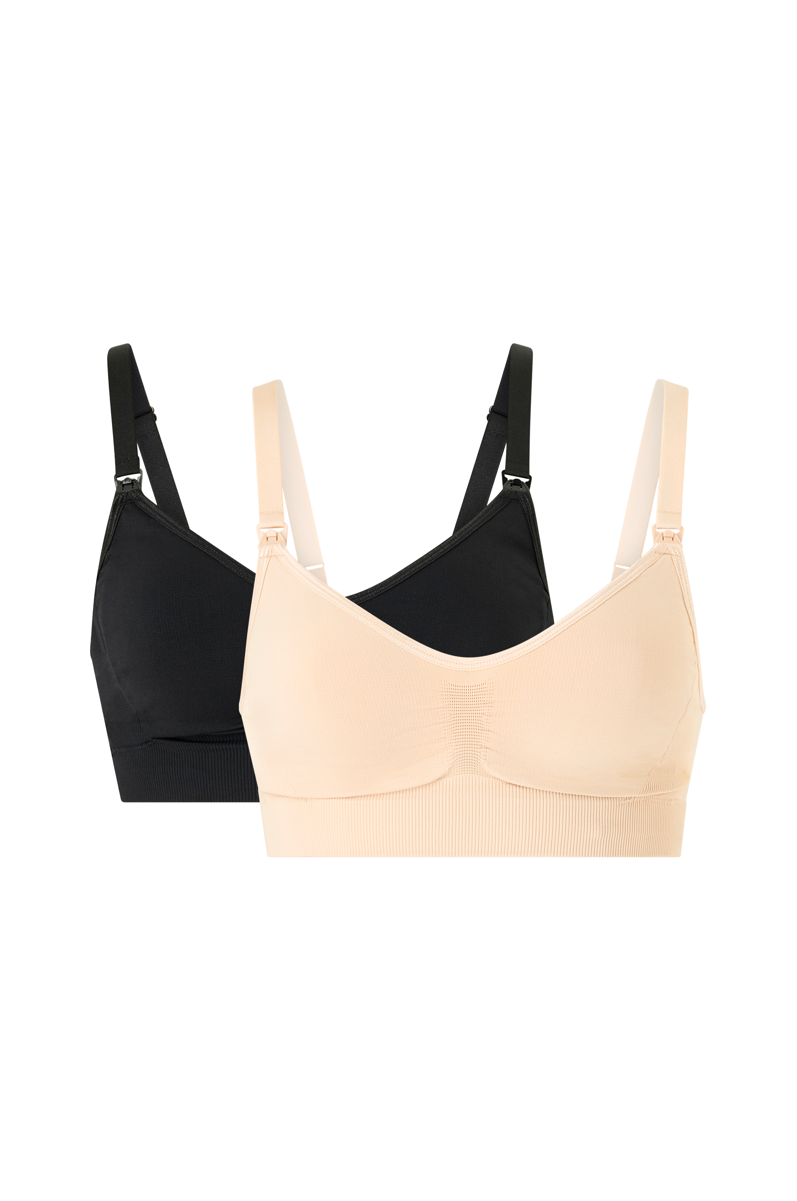 • 2-pak, uforede amme-BHer• Justérbare skulderstropper• Skåle som kan åbnes• Elastik under brystet
