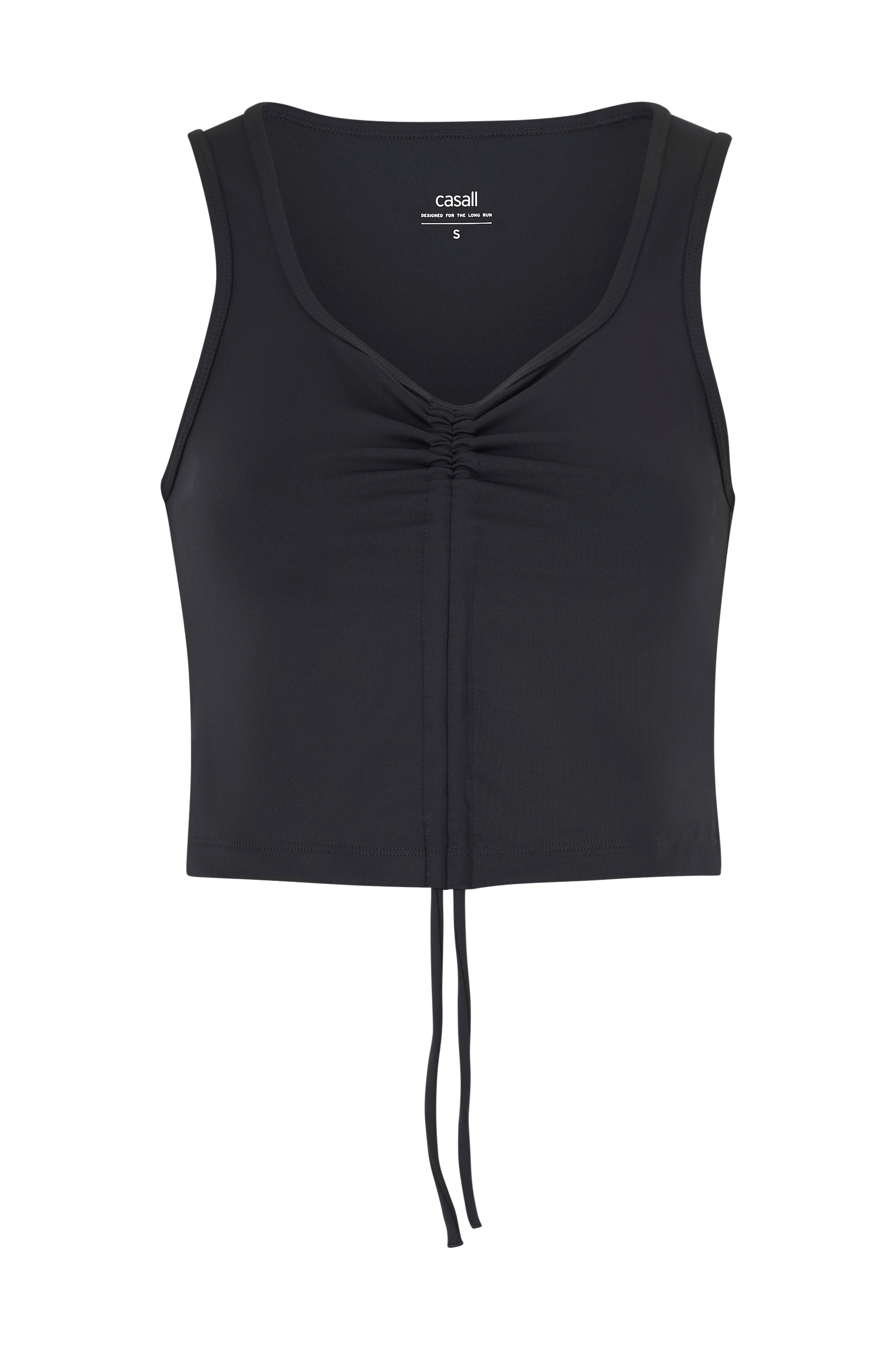 • Ærmeløs træningstop med croppet længde• Træksnørre med Rynkeeffekt midt foran• Elastisk materiale
