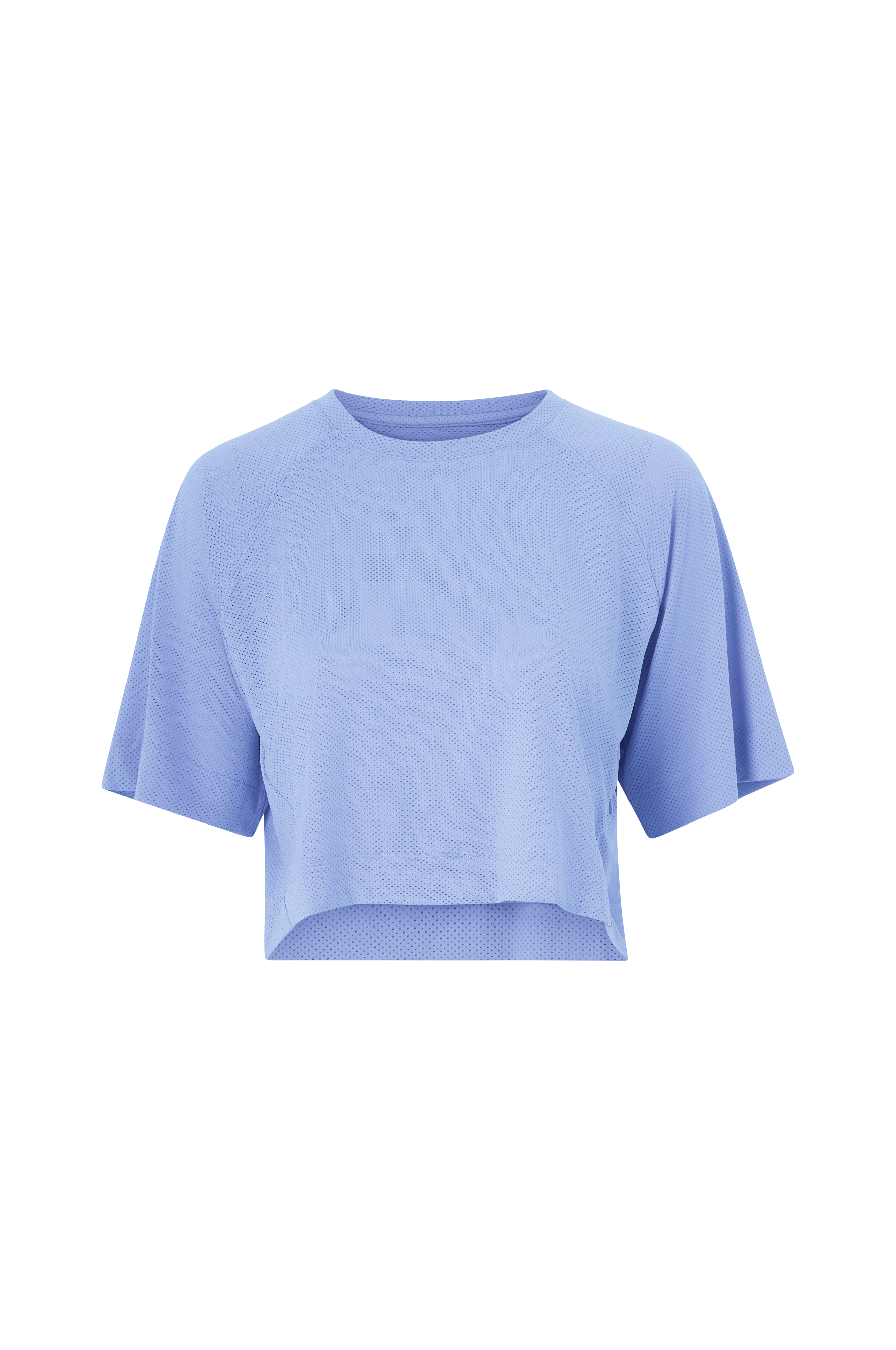 • Sporty, croppet t-shirt• Halvlange raglanærmer• Firkantet, afslappet pasform• Rund halsudskæring
