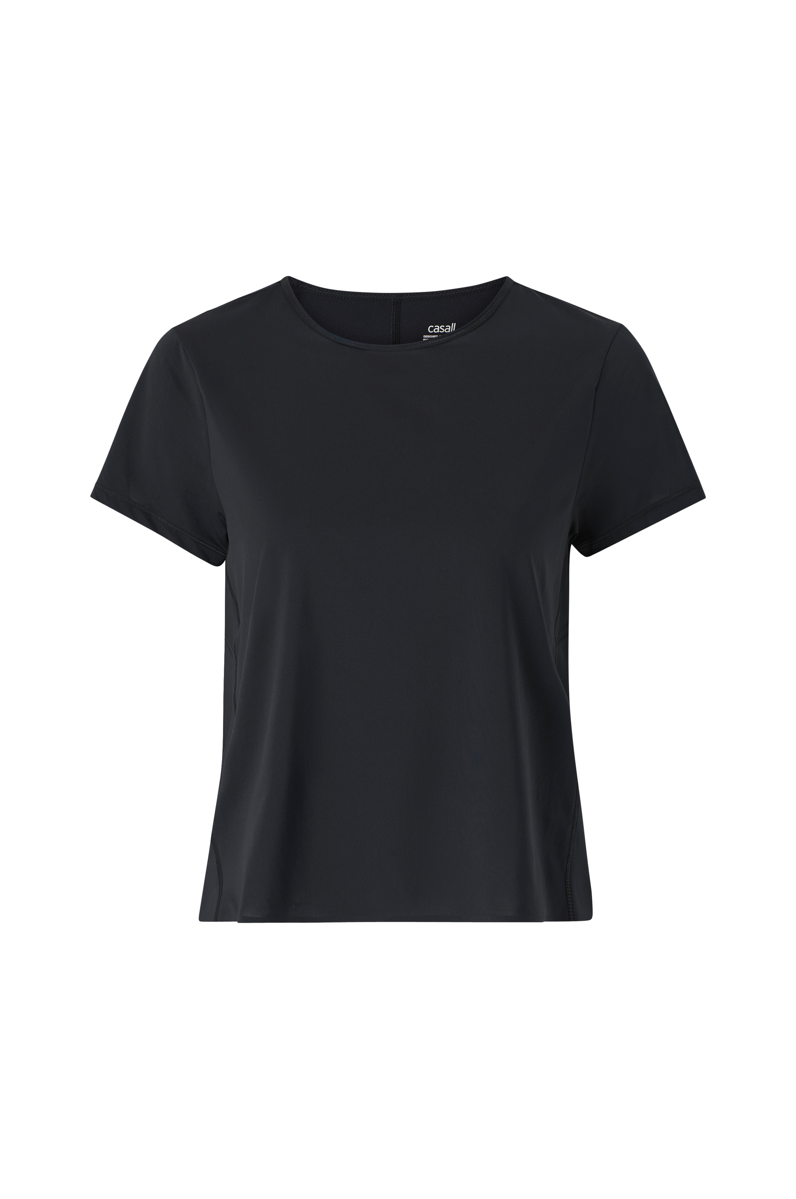 • Let, teknisk, hurtigtørrende materiale• Rund hals• Løs pasform• Glat, tynd kvalitet