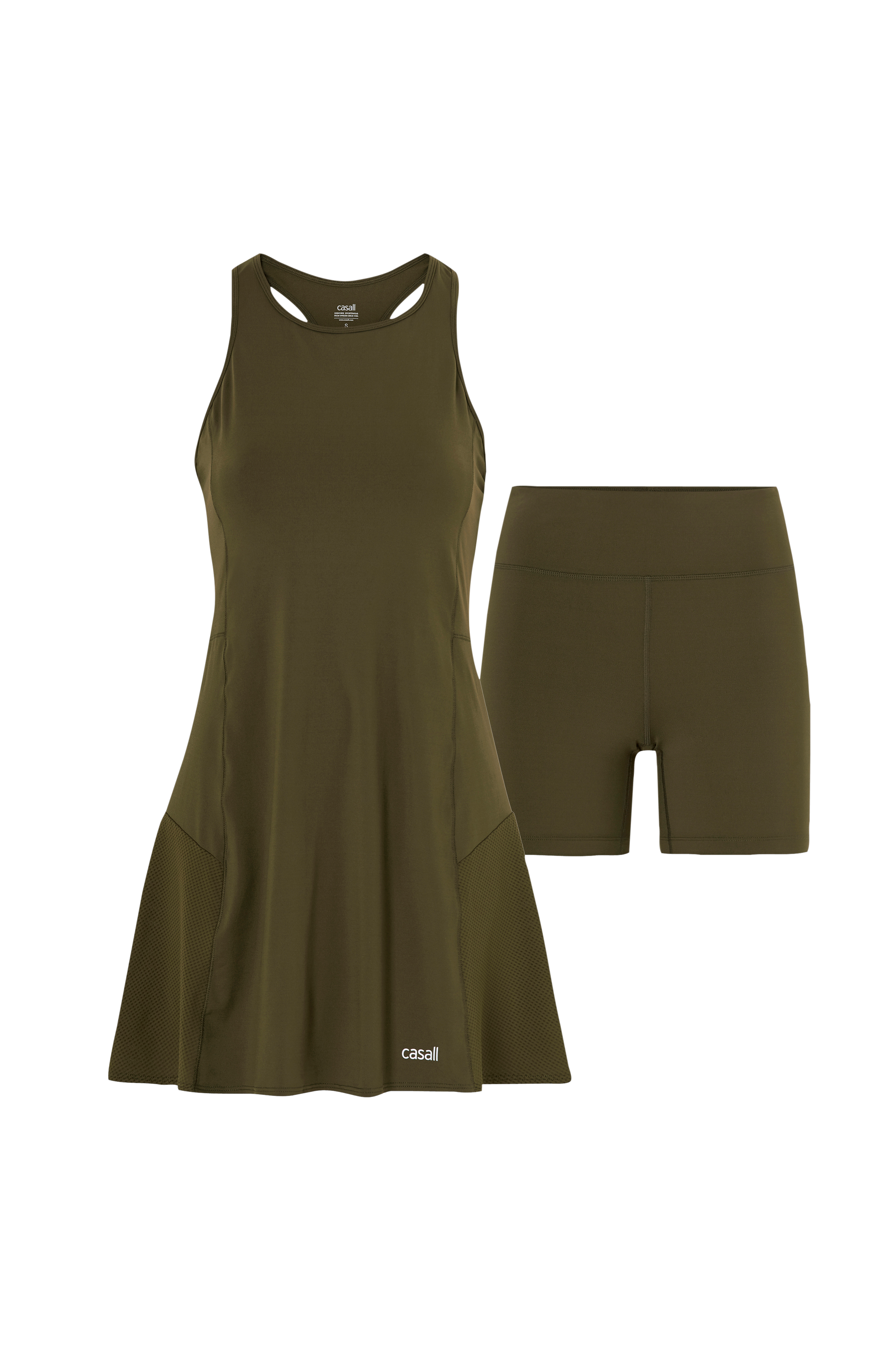 Ærmeløs, kort kjole i blødt, elastisk funktionsmateriale med god åndbarhed. Designet til tennis- og padelspil. A-formet model med bryderryg og luftige meshpartier på nederdelen. Matchende, korte indertights i samme materiale og farve. Kjolens længde ca. 80 cm i str. S.