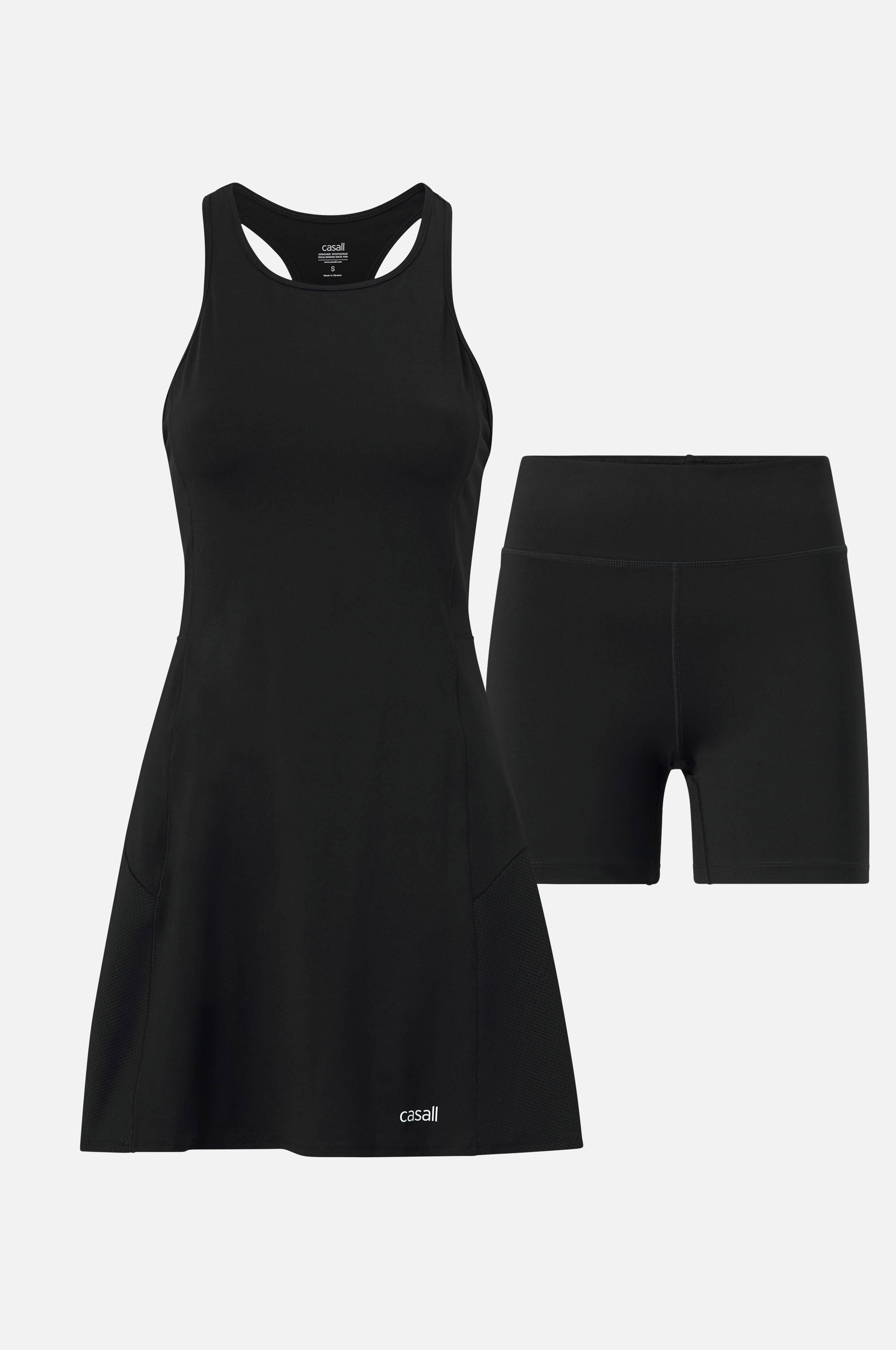Ærmeløs, kort kjole i blødt, elastisk funktionsmateriale med god åndbarhed. Designet til tennis- og padelspil. A-formet model med bryderryg og luftige meshpartier på nederdelen. Matchende, korte indertights i samme materiale og farve. Kjolens længde ca. 80 cm i str. S.