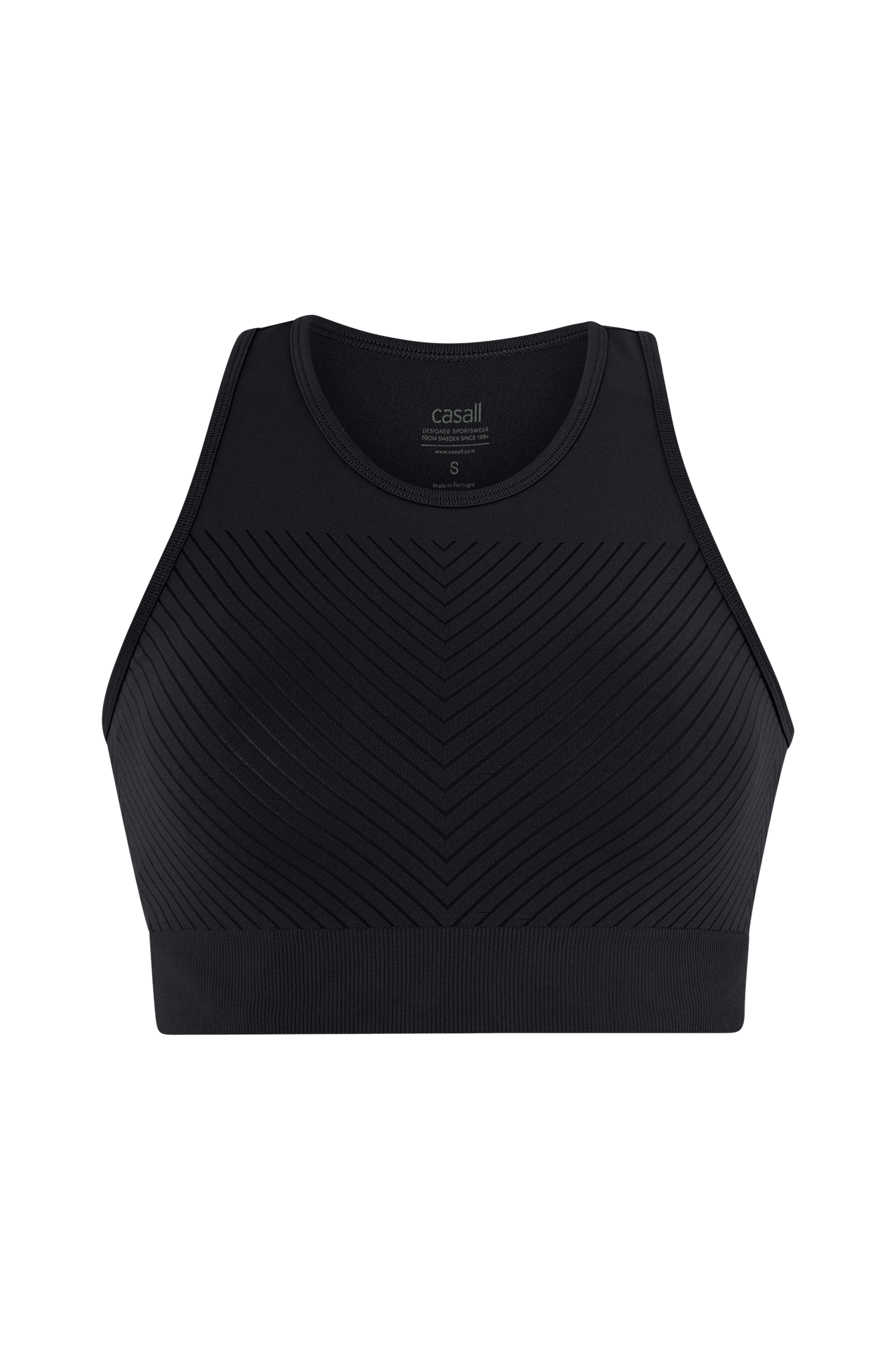 Sømløs top med ribbet kant forneden. Fremstillet i et lidt tyndere stof med stilrene, indvævede strukturer for ventilation og komfort. Slim fit.
