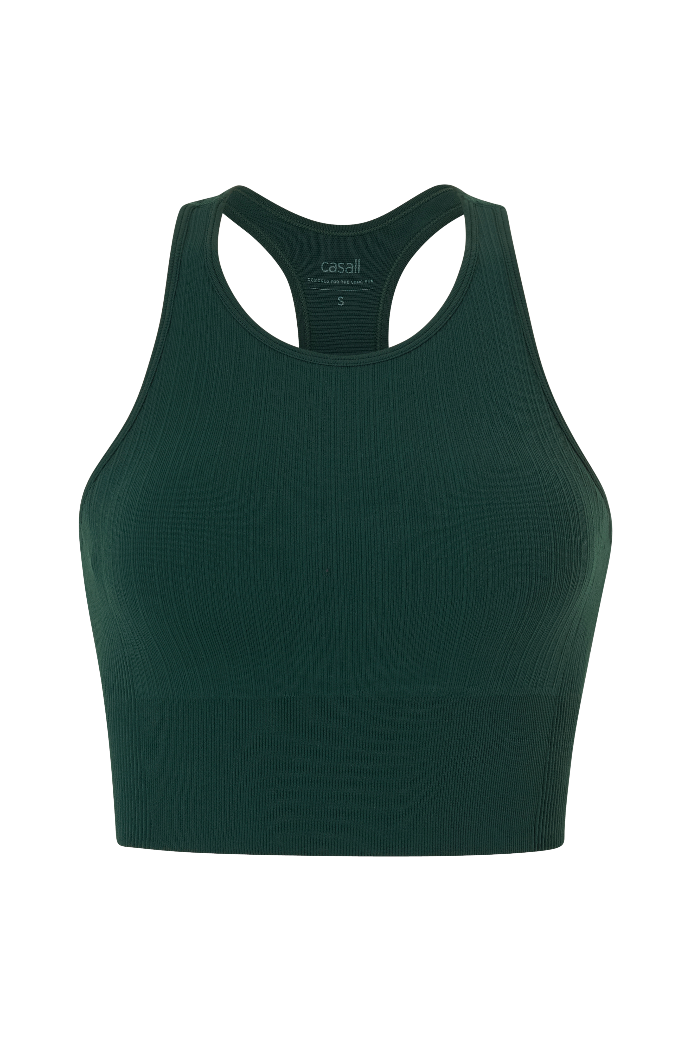 • Elastisk materiale med ribbet struktur• Sømløst design• Aftagelig polstring• Bryderryg• Croppet længde• Let støtte