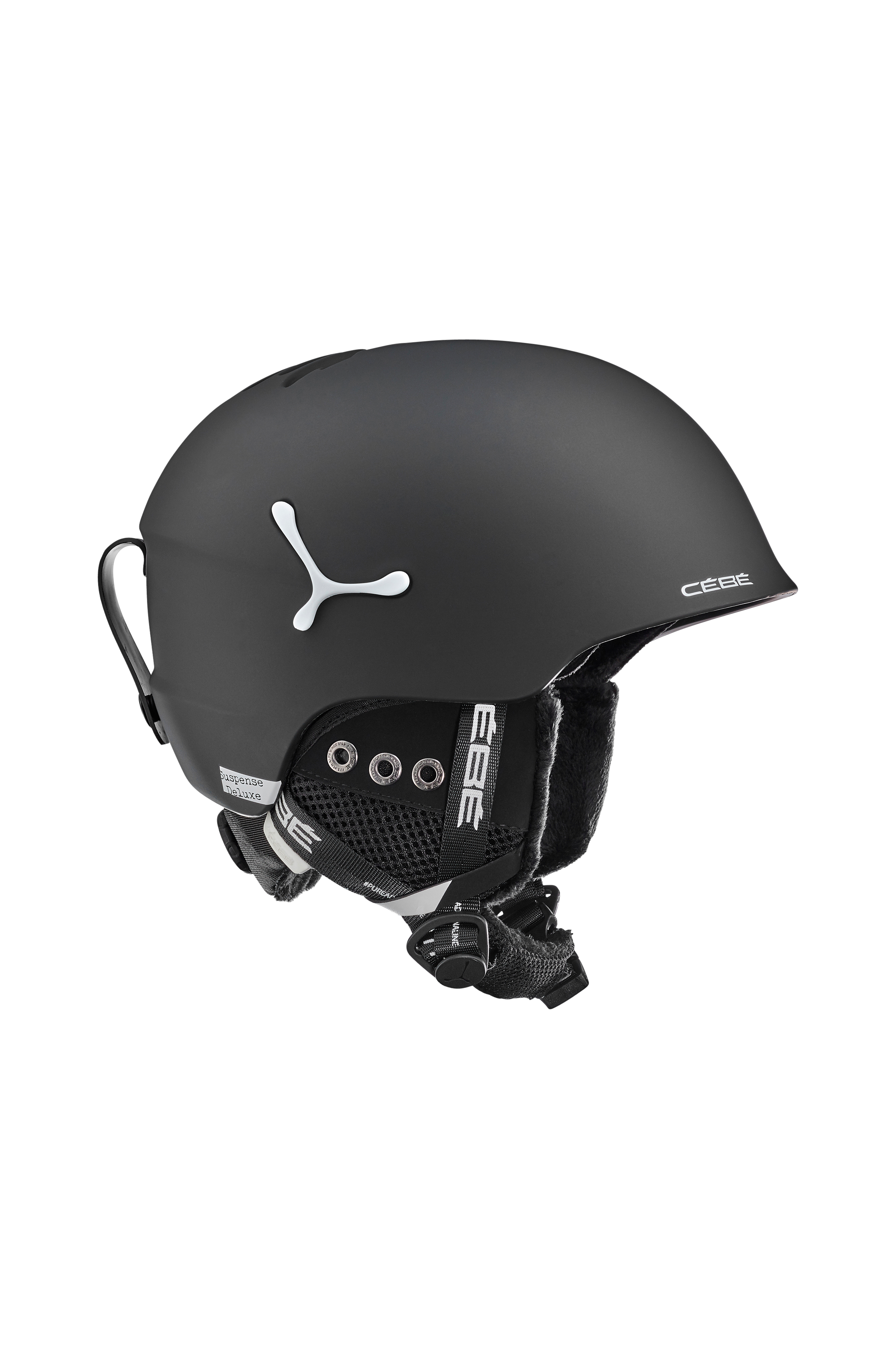 Suspense Deluxe er en letvægtshjelm fra Cébé i slagfast polykarbonat med mat finish. Blød luksus liner med allergibehandling som er nem at tage ud og vaske. Aftagelige ører ogmikrojustering i nakken.