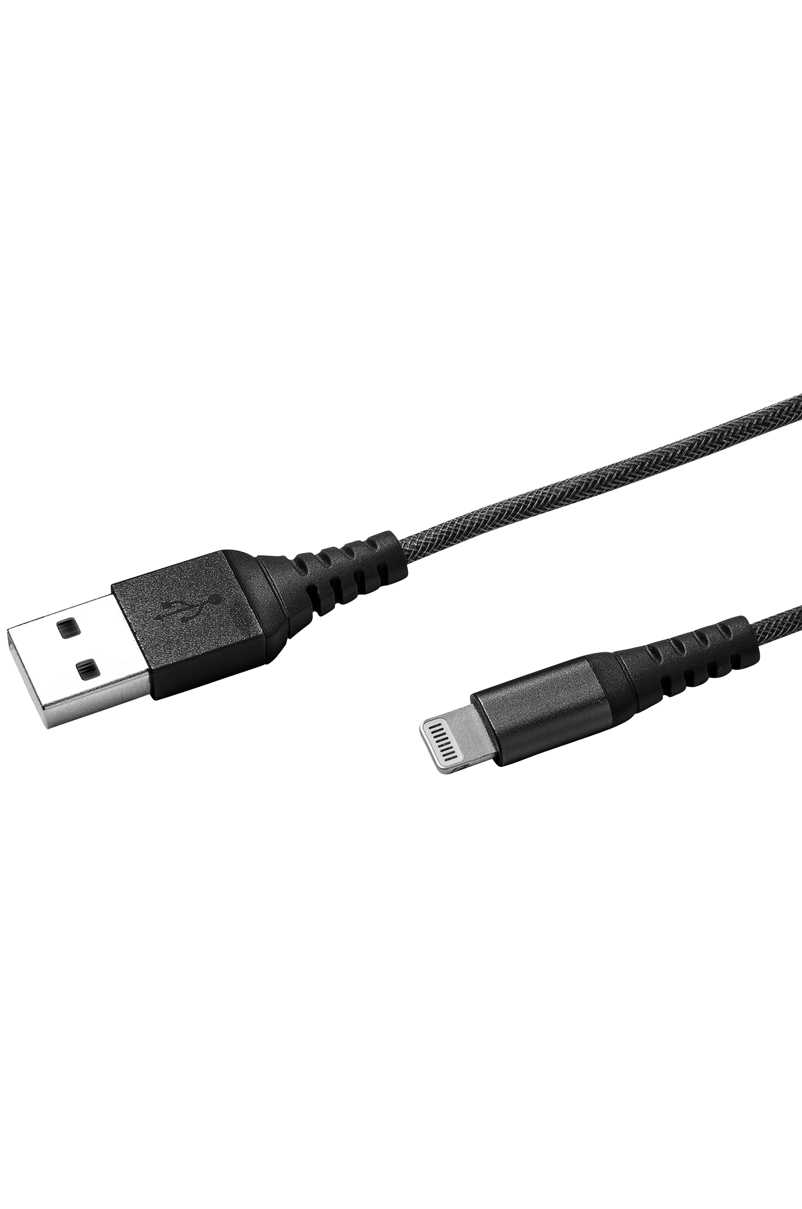 Ekstra robust USB-kabel med Lightning-stik, 1 meter og MFi-certificeret. Kablet har nylonbelægning, som giver høj slidstyrke og giver op til 10 gange længere levetid end standardkabler. Hurtigopladning takket være understøttelse af 2,4A.
