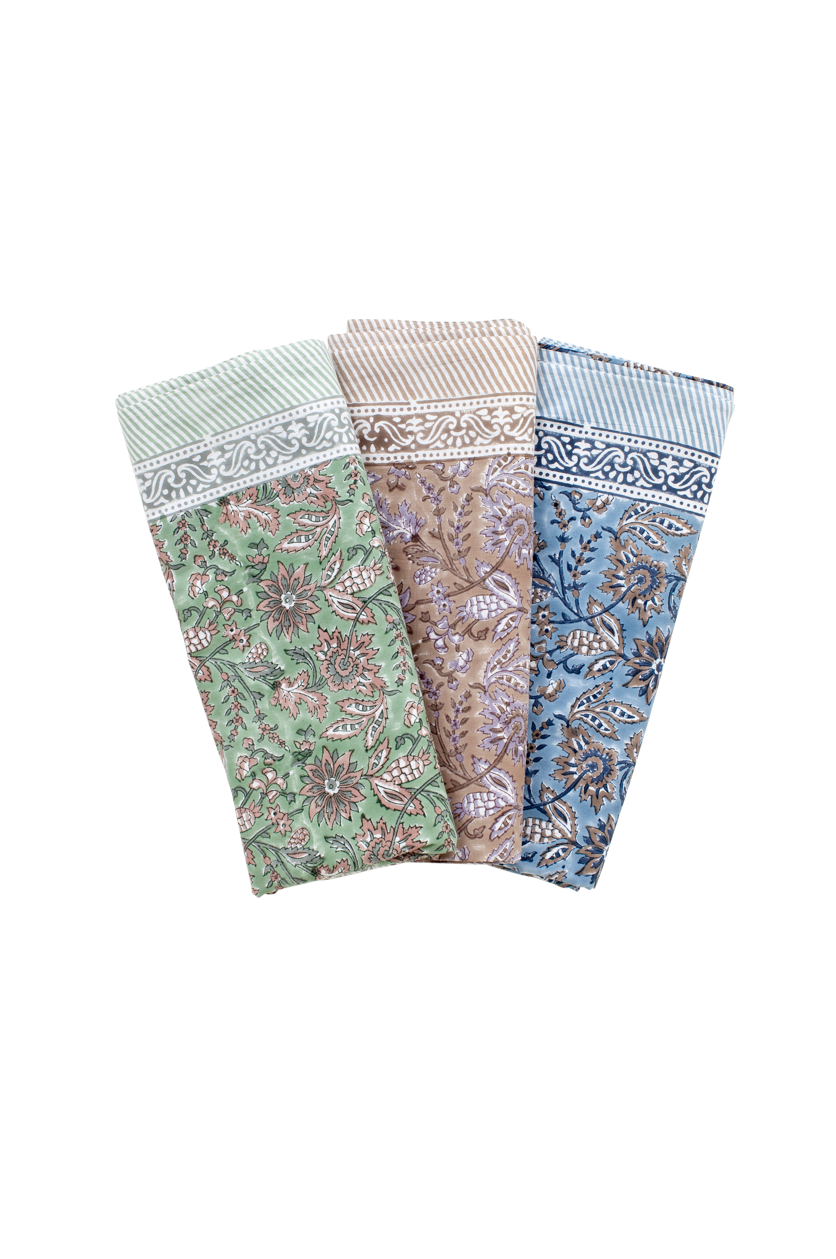 Smuk, mønstret bomuldsdug. Mønstret er trykt i hånden i traditionel indisk blokprintteknik. Et unikt håndværk som giver dugen et levende og dekorativt udtryk.