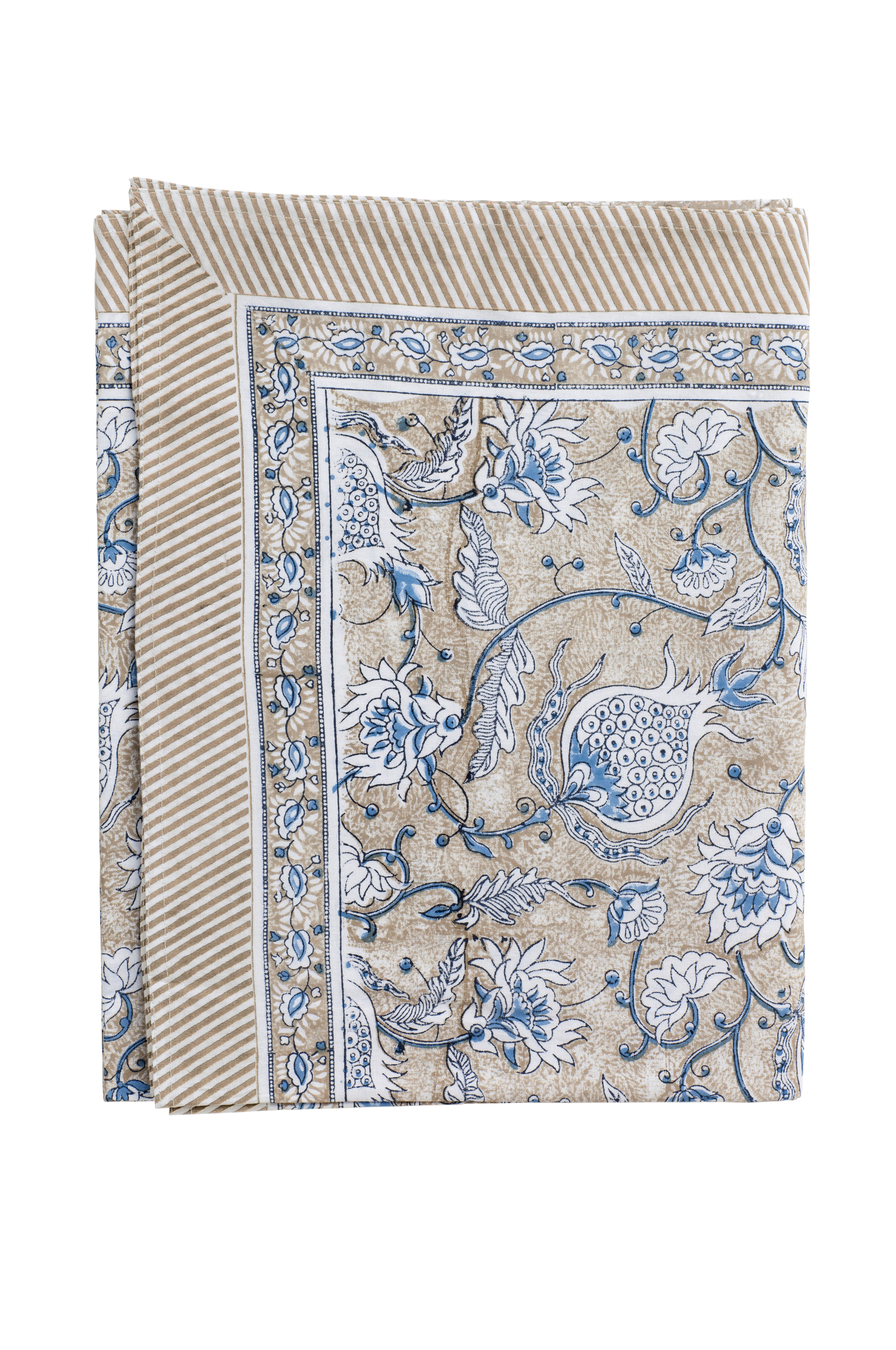 Smuk bomuldsdug fra mærket Chamois med et elegant og eksotisk mønster. Mønstret er trykt i hånden i traditionel indisk blokprintteknik. Et unikt håndværk som giver dugen et levende og dekorativt udtryk.