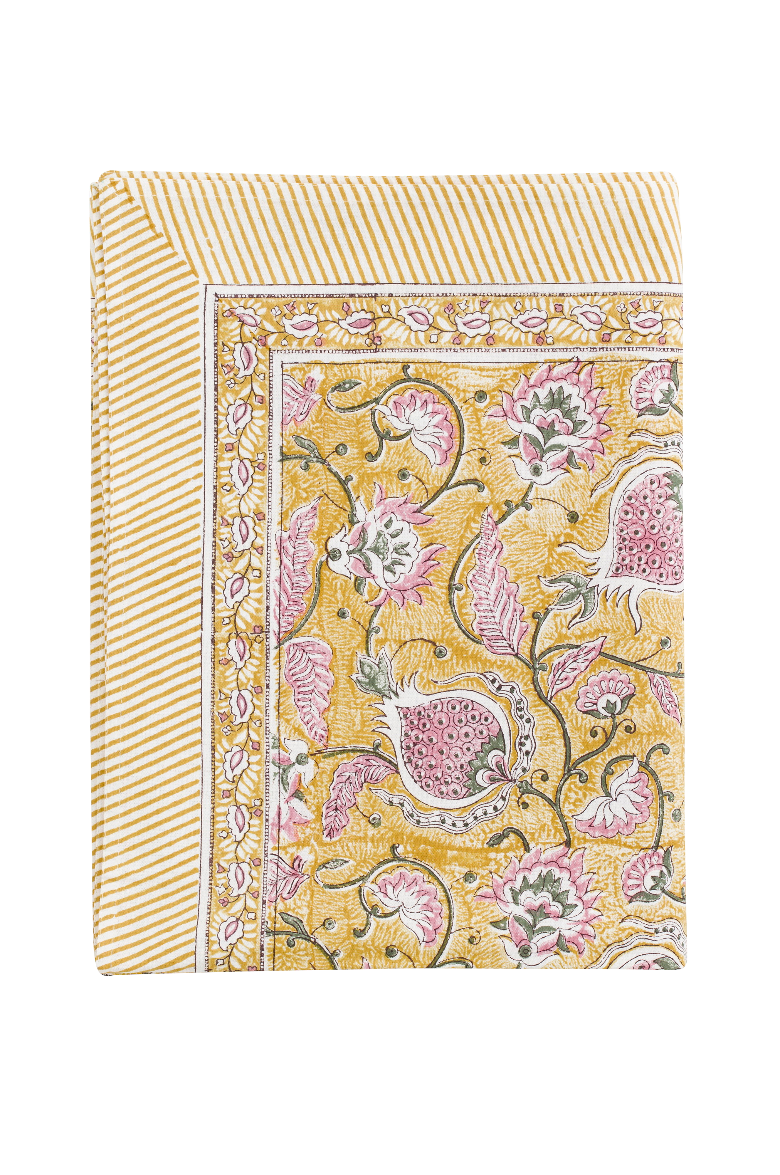 Dekorativ dug i bomuld af høj kvalitet med et smukt mønster af hvirvlende stængler, blade og granatæbler. Mønsteret er trykt i hånden ved hjælp af traditionelle indiske bloktrykteknikker. Et traditionelt håndværk, der giver hvert pudebetræk et unikt og dekorativt udtryk. Dette pudebetræk leveres uden inderpude. Vask forsigtigt på et kort (maks. 1 time) og skånsomt program for uld/silke med mildt vaskemiddel.